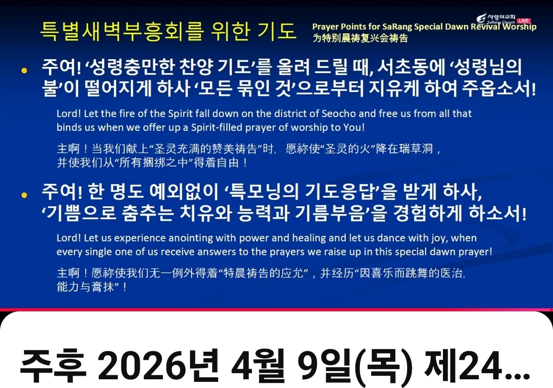 | ☆ ♣주일예배(주후 2026년 4월 5일)"어둠 속의 도약(跳躍)"(오정현 담임목사님)-사랑의교회 ☆ (0) | 2026.04.05 |