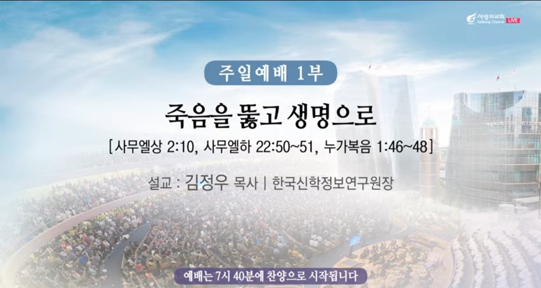 ♧주일예배(주후 2024년 7월 14일) 1부, 4부, 제목: "죽음을 뚫고 생명으로" 말씀: 사무엘 상 2:10, 사무엘하 22:50-51, 누가복음 1:46-48 대표기도: 유종성 부목사님 찬양인도: 쉐키나(오준석 부목사님) 사회: 임병영 부목사님 설교자: 김정우 목사님(한국신학정보연구원) ---- *사무엘상 2:10, 10 여호와를 대적하는 자는 산산이 깨어질 것이라 하늘에서 우레로 그들을 치시리로다 여호와께서 땅 끝까지 심판을 내리시고 자기 왕에게 힘을 주시며 자기의 기름 부음을 받은 자의 뿔을 높이시리로다 하니라. *사무엘하 22:50-51, 50 이러므로 여호와여 내가 모든 민족 중에서 주께 감사하며 주의 이름을 찬양하리이다. 51 여호와께서 그의 왕에게 큰 구원을 주시며 기름 부음 받은 자에게 인자를 베푸심이여 영원하도록 다윗과 그 후손에게로다 하였더라. *누가복음 1:46-48, 46 마리아가 이르되 내 영혼이 주를 찬양하며. 47 내 마음이 하나님 내 구주를 기뻐하였음은. 48 그의 여종의 비천함을 돌보셨음이라 보라 이제 후로는 만세에 나를 복이 있다 일컬으리로다. ----------- =========================== ♧주일예배(주후 2024년 7월 14일) 2부, 3부. ▶설교자: 김장한 목사님(극동방송 이사장) 2부ㆍ3부 제목: "이상적인 교회" 말씀: 사도행전 2:41~47 설교자: 김장한 목사님(극동방송 이사장) ㅡㅡㅡㅡㅡ *사도행전 2:41~47, 41 그 말을 받은 사람들은 세례를 받으매 이 날에 신도의 수가 삼천이나 더하더라. 42 그들이 사도의 가르침을 받아 서로 교제하고 떡을 떼며 오로지 기도하기를 힘쓰니라. 43 사람마다 두려워하는데 사도들로 말미암아 기사와 표적이 많이 나타나니. 44 믿는 사람이 다 함께 있어 모든 물건을 서로 통용하고. 45 또 재산과 소유를 팔아 각 사람의 필요를 따라 나눠 주며. 46 날마다 마음을 같이하여 성전에 모이기를 힘쓰고 집에서 떡을 떼며 기쁨과 순전한 마음으로 음식을 먹고. 47 하나님을 찬미하며 또 온 백성에게 칭송을 받으니 주께서 구원 받는 사람을 날마다 더하게 하시니라. ----- ▶김정우 목사님(2부,3부) -한나의 인생에는 모순이 많았습니다. 그 이름은 한나인데 은혜를부 뜻합니다. 그렇지만 주님께서 그녀의 태를 닫아서 임신을 할 수 없게 되었습니다. 이미 생명의 문이 닫혔는데, 주님의 은혜가 어디에 있습니까? 한나는 거의 남편 엘가나의 첫째, 아내입니다. 첫째는 창세기 일장의 첫째, 날처럼 특별하고 유일하고 유니크한 날인데 첫째인데 넘버원인데 둘째, 브닌나에게 습관적으로 지속적으로 끊임없이 괴로움을 당했습니다. 온 나라가 축제를 맞이하면 모든 사람들이 가정들이 실로 성소로 가서 하나님께 예배를 드리고 1년 중에 가장 맛있는 것을 먹는 날인데 브닌나는 주님의 집에서도 한나를 괴롭혔습니다. 한나 너 안나 하나님이 너희 태를 닫았는데 무슨 한나 그때 남편 엘가나가 한나를 위로하기 위해서 한나 보고 왜 우세요. 왜 안 막으세요? 왜 슬퍼하세요? “내가 당신에게 열 아들보다 낫지 않소?” 웬 근거 없는 자신감? 자식을 낳을 수 없어서 고통당하는데 내가 당신에게 10아들보다 낫다 이 말이 무슨 도움이 되죠. 엘가나는 한나의 깊은 고통에 신체적이고 영적인 고통에 공감을 하지 못하고 있습니다. 한나를 제대로 이해를 하지 못하고 있습니다. 남자들은 여자의 정서에 대해서 반응하는데 늘 서툴러요 의도는 좋은데 결과는 늘 나빠요 나는 나의 아내에게 사과를 하거나 위로를 할 때면 늘 더 화내게 하는 특별한 의사가 저에게 있는 것 같습니다. 한나는 마음이 너무나 괴로워서 성전에 들어가서 간절히 기도하는데 대제사상 앨리가 한나를 보고 술을 그만 마시게나. 포도주 끊으세요! 라는 말을 하고 있습니다. 내 제사장께서 이렇게 피상적으로 단정적으로 나를 볼 수 있을까? 우리는 인생에서 모순에 부딪치면 어떤 반응을 합니까? 당황스럽고 화가 나고 좌절스럽고 다 포기해버리고 싶습니다. 또 때로는 지나치게 방어적이 되어서 오히려 공격적이 되기도 합니다. 그런데 인생을 좀 살아보니까 모순이 인생의 기회구나! 아이러니가 패러독스의 기회구나! 모순이 역설의 기회구나! 아 이 모순은 나로 하여금 성숙하게 하라고 하는 현실로 내게 다가온 것이구나! 한나는 자신의 모순을 방치하지 않고 대면하였습니다. 직면했습니다. 그래서 그는 죽음을 뚫고 생명으로 나아갔습니다. 한나는 태가 닫혔지만 아들 달라고 기도를 했습니다. 문이 꽉 닫혔는데 열어달라고 두드리고 있습니다. 하나님께서 닫았으니 하나님이 여셔야 되지 않겠습니까? 한나는 믿음을 선형적으로만 생각하지 않았습니다. 직선적으로 생각하지 않았습니다. 힘을 준만큼 결과가 나온다고 생각하지 않았습니다. 하나님은 원인과 결과를 방정식대로 만드시는 분이 하나님은 곡선으로 일하시는 분이고, 변화구를 던지시는 분이고 바나나킥을 차시는 분입니다. 김중권 목사님의 말씀대로 변장된 축복으로 늘 우리에게 다가오시는 분이십니다. 한 나는 하나님께서 만약 나에게 아들을 주시면, 내가 그 아들을 바치겠다고 서원을 하고 있습니다. 역설입니다. 평생 갖고 싶은 것을 주시면 내가 그것을 드리겠다고 하고 있습니다. 상거래를 하는 것이 아