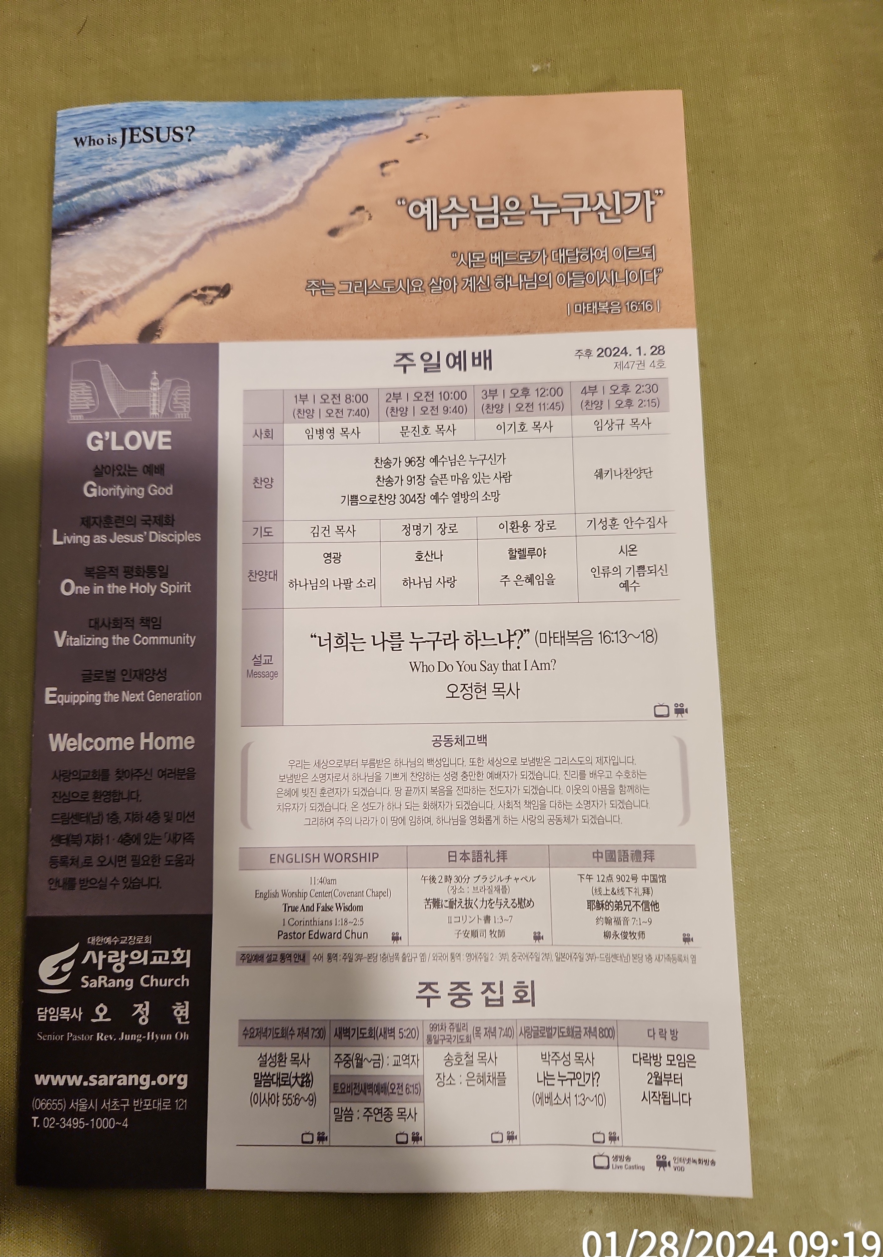 주일예배(주후 2024년 1월 28일) 제목: "너희는 나를 누구라 하느냐?“ -첫 번째 강해(예수님은 누구신가?) 말씀: 마태복음 16:13-18 찬양인도: 쉐키나(이 다니엘 부목사님), 영광찬양대 대표기도: 김건 부목사님(1부) 사회: 임병영 부목사님 설교자: 오정현 담임목사님 ----- * 마태복음 16:13-18, 13 예수께서 빌립보 가이사랴 지방에 이르러 제자들에게 물어 이르시되 사람들이 인자를 누구라 하느냐. 14 이르되 더러는 세례 요한, 더러는 엘리야, 어떤 이는 예레미야나 선지자 중의 하나라 하나이다. 15 이르시되 너희는 나를 누구라 하느냐. 16 시몬 베드로가 대답하여 이르되 주는 그리스도시요 살아 계신 하나님의 아들이시니이다. 17 예수께서 대답하여 이르시되 바요나 시몬아 네가 복이 있도다 이를 네게 알게 한 이는 혈육이 아니요 하늘에 계신 내 아버지시니라. 18 또 내가 네게 이르노니 너는 베드로라 내가 이 반석 위에 내 교회를 세우리니 음부의 권세가 이기지 못하리라. ㅡㅡㅡㅡㅡ ※강철 신발을 신고, 기쁨의 면류관을 쓰고, 빛의 갑옷을 입고... ▶오늘부터 “예수님은 누구신가?”(Who is Jesus?) 시리즈를 시작하게 되었습니다. 이번 시리즈가 진행될수록 우리 젊은이들 용으로 예수님으로 여러분들의 삶에 밑줄을 쭉 치는 인생 되기를 바랍니다. 이게 무슨 말인지 모르면 좀 내가 나이가 들었구나 생각하시면 되고 제가 이번 시리즈에 대해서 광고가 되어서 그런지 여러분들이 저에게 목사님 이번 시리즈를 설레이며, 기대합니다라는 e메일을 보내왔어요. 설레며 기대합니다. 제가 그 e 메일을 받고 기뻤겠어요? 어떻겠어요? 물론 기쁨도 있었겠지만 거룩한 부담이 많이 되었습니다. 말씀의 능력 말씀 자체가 능력이 있으니까 말씀의 능력으로 우리의 모든 기대와 기대를 채우시고 또 저희에게 더 큰 부담을 극복시켜 주시길 바랍니다. 말씀의 능력을 더 말수 능력을 얘기하니까 제가 올해 시작하면서 무슨 신발을 신고요? 강철 신발은 신고, 기쁨의 면류관, 쓰고, 빛의 갑옷을 입고, 무슨 옷을 입고요 빛의 갑옷을 입고 무슨 모자를 쓰고요. 기쁨의 면류관을 쓰고요... 그리고 특별히 이 한 해 동안 2024년이니까, 우리가 감사를 몇 번 하자 그랬죠? 2034번, 2024번을 감사하려면 하루에 몇 번 감사해야 한다고요? 하루에 6번, 6번 감사는 간단하다고 그랬죠? 식사하기 전에도 감사하고, 식사 마치고도 감사하고,,, 제가 얼마 전에 이렇게 저녁 식사를 같이 하면서 집사람한테 고기가 왜 이래 질겨요? 그러니까 우리집사람이 가만히 있더니, “여보 감사합시다!” 그러더라고요. 그래 감사를 제가 하니까 그다음 고기가 부드러운 고기가 되었어요. 부드러운 고기가 되었어요. 그러니까 고기가 질기다가 뭐라고 했다가 금방 감사하니까 그다음에 고기가 안 질겼습니다. 그걸 보고 내가 야 이게 순종의 파워가 이렇게 심하냐 순종의 파워가 있구나! 그러니까 앞으로 저나 여러분이나 이 말씀의 수준에 의하여 우리의 삶의 수준이 결정되리라고 믿습니다. 저는 이 시리즈를 왜 시작하게 되었는가? 두 가지 때문에 이 시리즈를 시작하게 되었어요. 첫 번째는 다 안다고 하지만 우리 성도들이 예수님에 대한 삶의, 예수님에 대한 성경적인 어떤 지식과 깨달음이 너무 피상적이에요. 교회를 30년, 40년 믿은 분이 어떤 분에게 이런 얘기를 해요. ‘내가 하나님을 믿는 겁니까? 예수님을 믿는 겁니까?’ 이런 얘기를 하는 거예요. 한국교회에 뭔가 문제가 있구나! 지금 답 안 할 거예요. 좀 이따 할 거예요. 그러니까 예수님에 대한 지식이 상식선을 넘어서지 못하고, 마치 눈 먼 자 이 장님이 앞을 못 보는 사람의 코끼리 만지듯이 피상적이기 때문에, 삶의 결정적인 순간에 믿음이 작동하지 않는 겁니다. 결정적인 순간에 믿음의 역사가 일어나지 않는 것이에요. 예수님을 안다고 하면서도 정말 중요한 순간에는 믿지 않는 사람하고 똑같은 결정을 하고 사는 거예요. 예수님을 믿는다고 하면서도 정작 능력 없는 삶을 사는 것이에요. 예수님을 따르는 수많은 군중들이 있었습니다. 그런데 그 군중들 가운데 12회 혈루(血淚) 증(症)을 앓던 여인 진짜 기적이 필요한 그 여인이 긴급할 때 예수님의 옷자락을 딱 잡아서 그래 했을 때, 그 여인이 치유를 받았습니까? 안 받았습니까? 치유 받았죠. 그런데 대부분의 군중들은 따르기는 했지만 그런 기적을 체험하지 못했습니다. 마치 이것은 무엇 같다면 여러 스마트폰에 있잖아요. 우리 휴대폰 스마트폰을 사용하는 사람들 가운데 스마트폰에 많은 기능들이 있잖아요. 그래서 어떤 사람들은 스마트폰을 가지고 이제 모든 걸 처리하고 내가 아는 어떤 목사님은요 이제 모든 걸 다 치워버려 스마트폰 하나만 갖고 설교하러 올라갈 때도, 요즘 젊은 것 같고 다 모두 그런 처리해요. 근데 어떤 우리 어른들은 전화로만 쓰잖아요. 이것도 무슨 말인지 이해가 안 되시면,,, 그러니까 휴대폰 기능을 제대로 아는 사람과 알지 못하는 사람의 차이도 크잖아요. 상당한데, 이건 예수님을 제대로 아는 사람과 제대로 알지 못하는 사람의 차이는 이거는 어마어마한 것이 신앙의 작동 기능이 다를 것입니다. 그러니까 여러분들이 또 