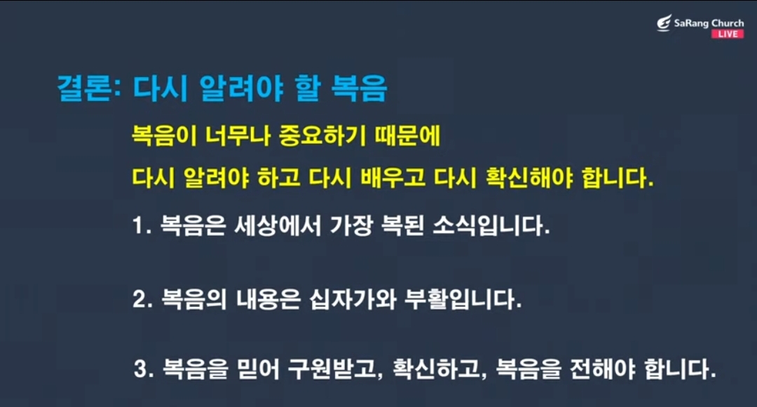 | ☆ 주일예배(주후 2023년 5월 21일) "다시 알아야 할 복음"(박성규 목사님-초빙(총신대 총장-5/25일 취임)-사랑의 교회 ☆ (0) | 2023.05.21 |