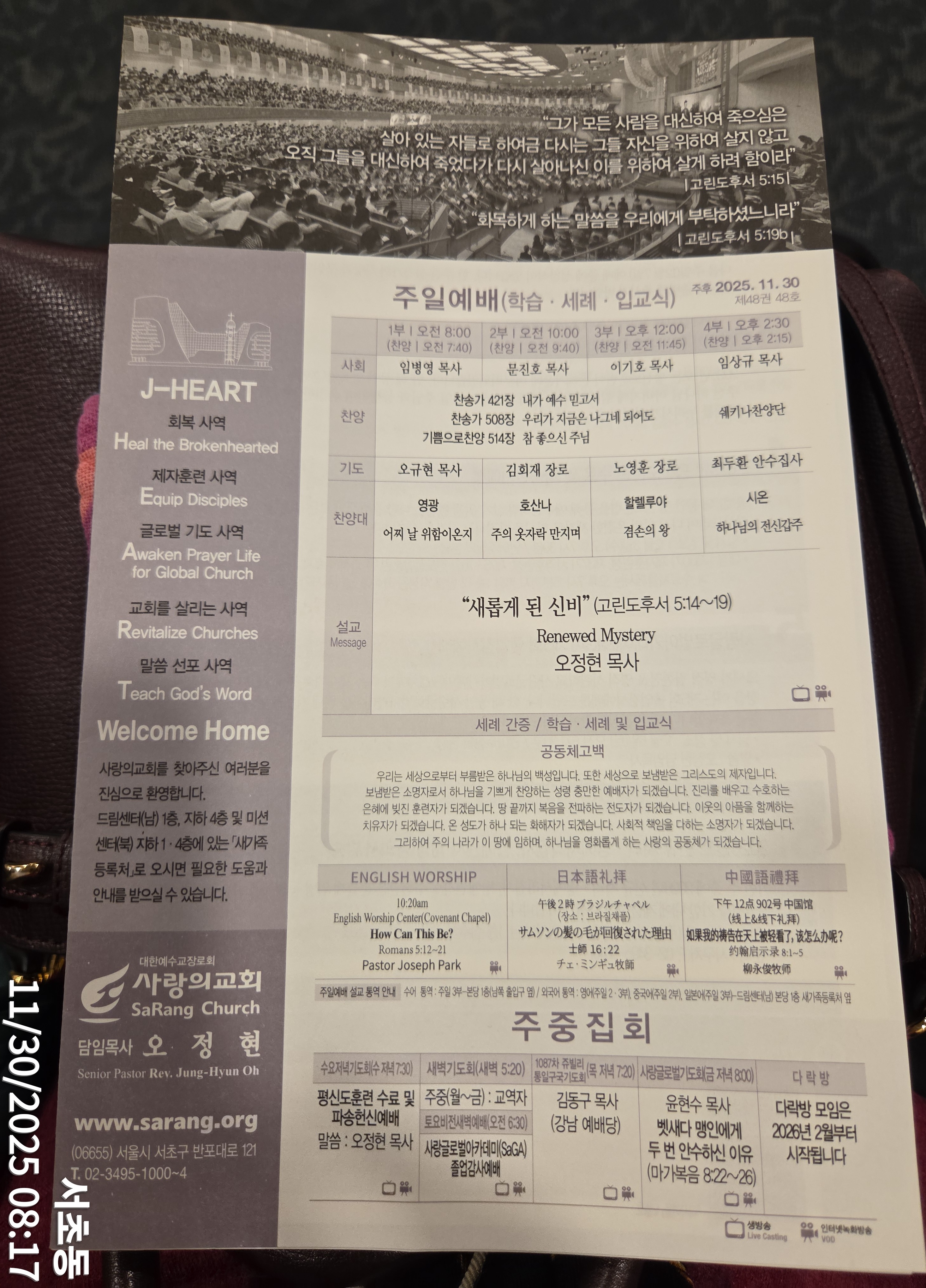 | ☆ ♣ 주일예배(주후 2025년 11월 23일) "사모하는 주님을 향한 감사 보고"(오정현 담임목사님)-사랑의 교회 ☆ (0) | 2025.11.23 |