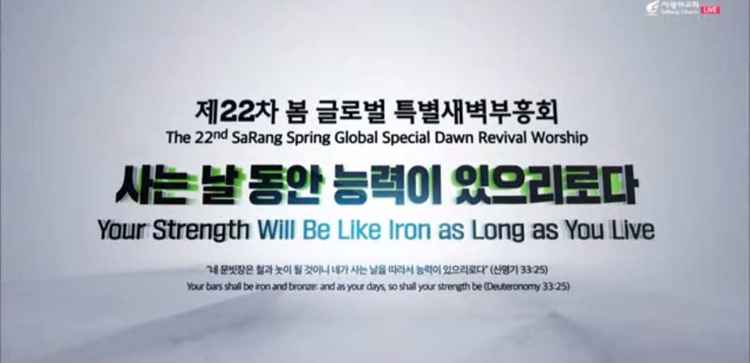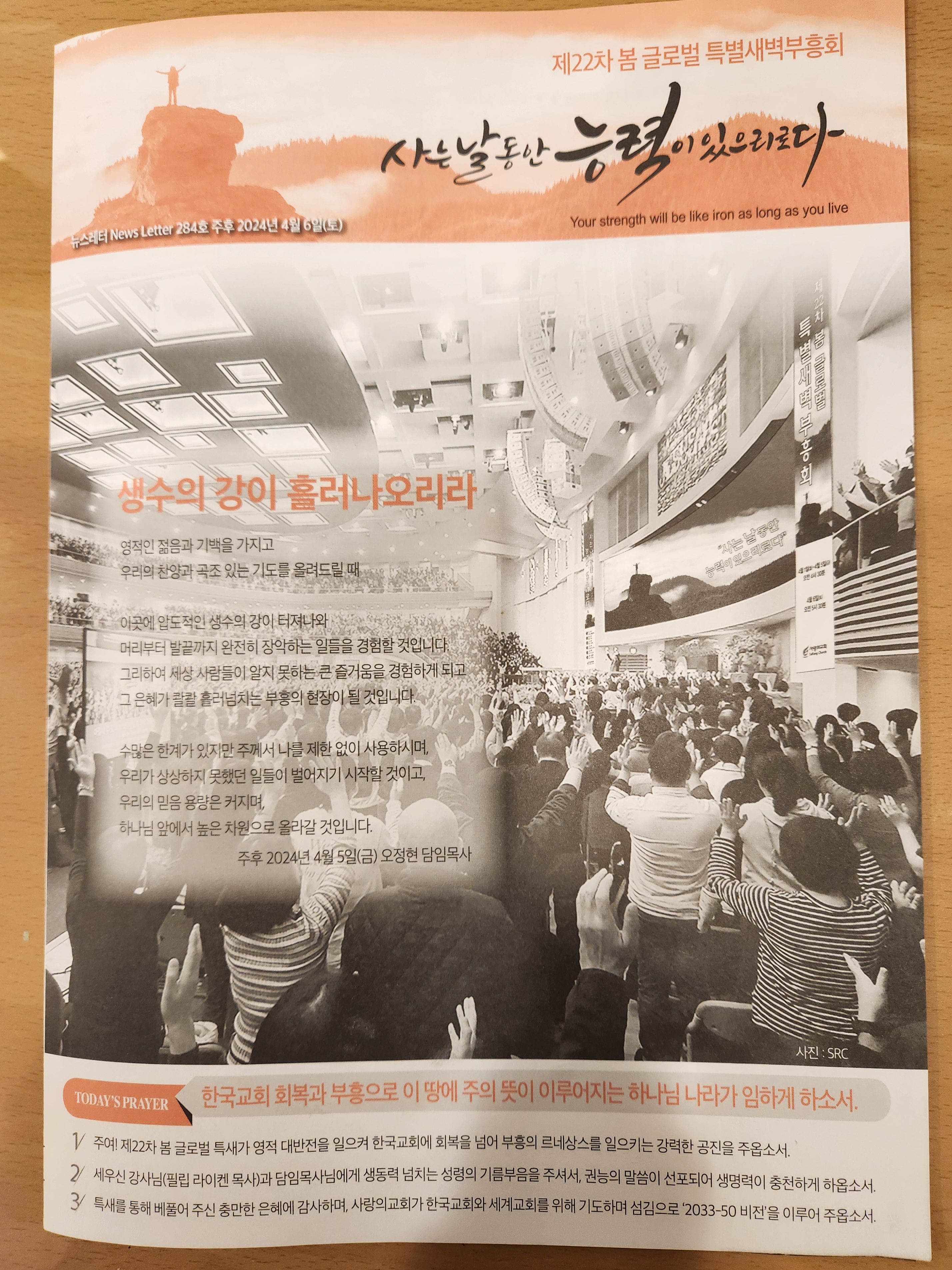♣제22차 봄 글로벌 특별부흥호(2024년 4월 06일)-여섯째 날 -사는 날 동안 능력이 있으리로다. 제목: " 말씀: 설교자: 오정현 담임목사님 ---- |