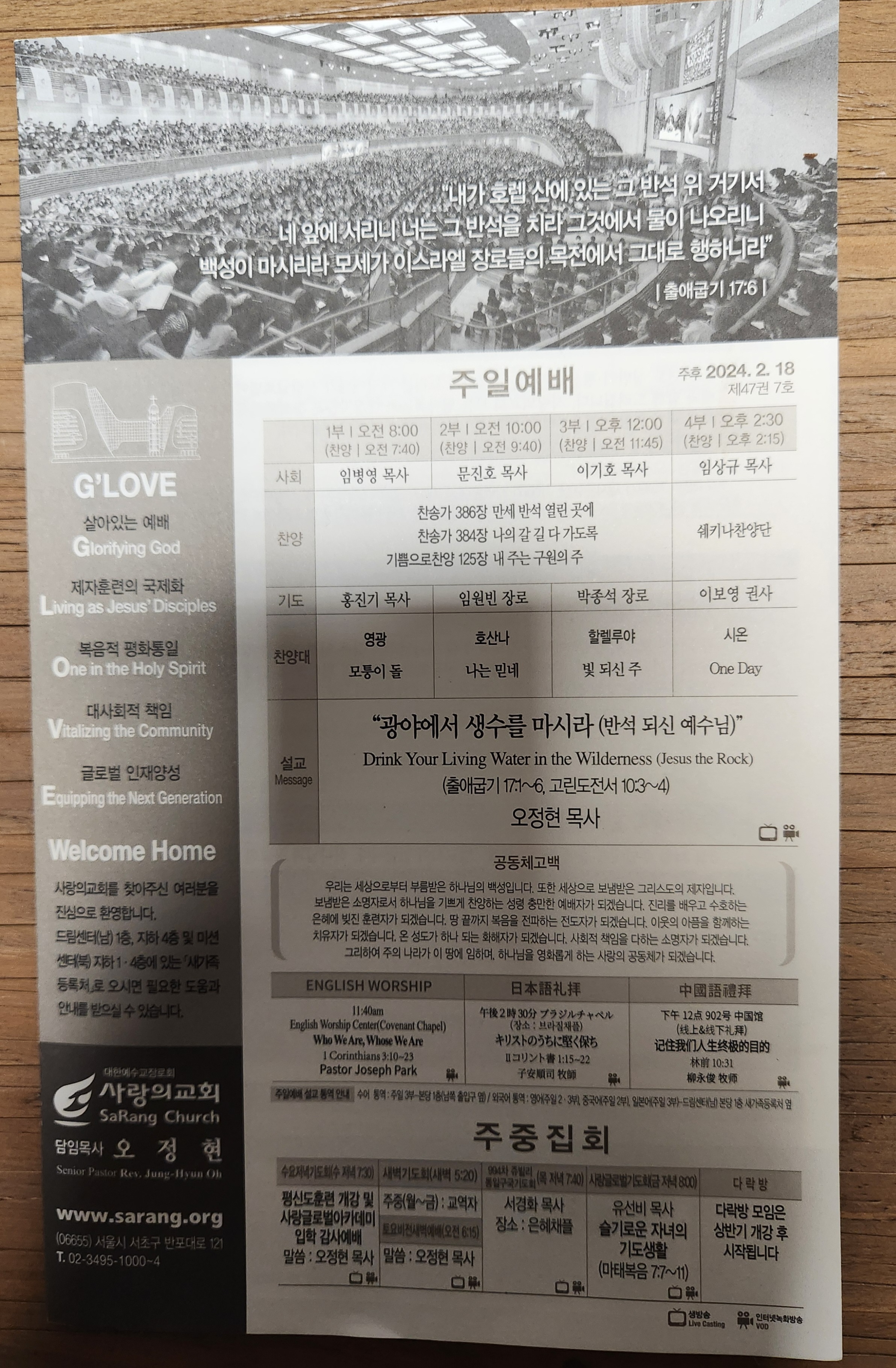 ☆ ♣주일예배(주후 2024년 02월 18일) "광야에서 생수를 마셔라"(반석 되신 예수님)-(오정현 담임목사님)-사랑의 교회 ☆