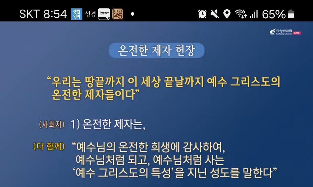 오늘 마음을 같이 해 가지고요. 같이 해 가지고 우리 찬양자도 마찬가지고 우리는 찬양만 하는 사람이야기 아니라, 우리는 찬양하는 특명 전권 대사인 것이에요. 오케스트라 우리 반주만 한 것이 아니라 오케스트라 전권대사가 되는 것이에요. 같이 우리 사랑의 교회 여기에 우리의 꿈이 담겨있는 것이에요. -온전한 제자헌장은 여기에 우리 사랑의 꿈이 담겨있는 거예요.