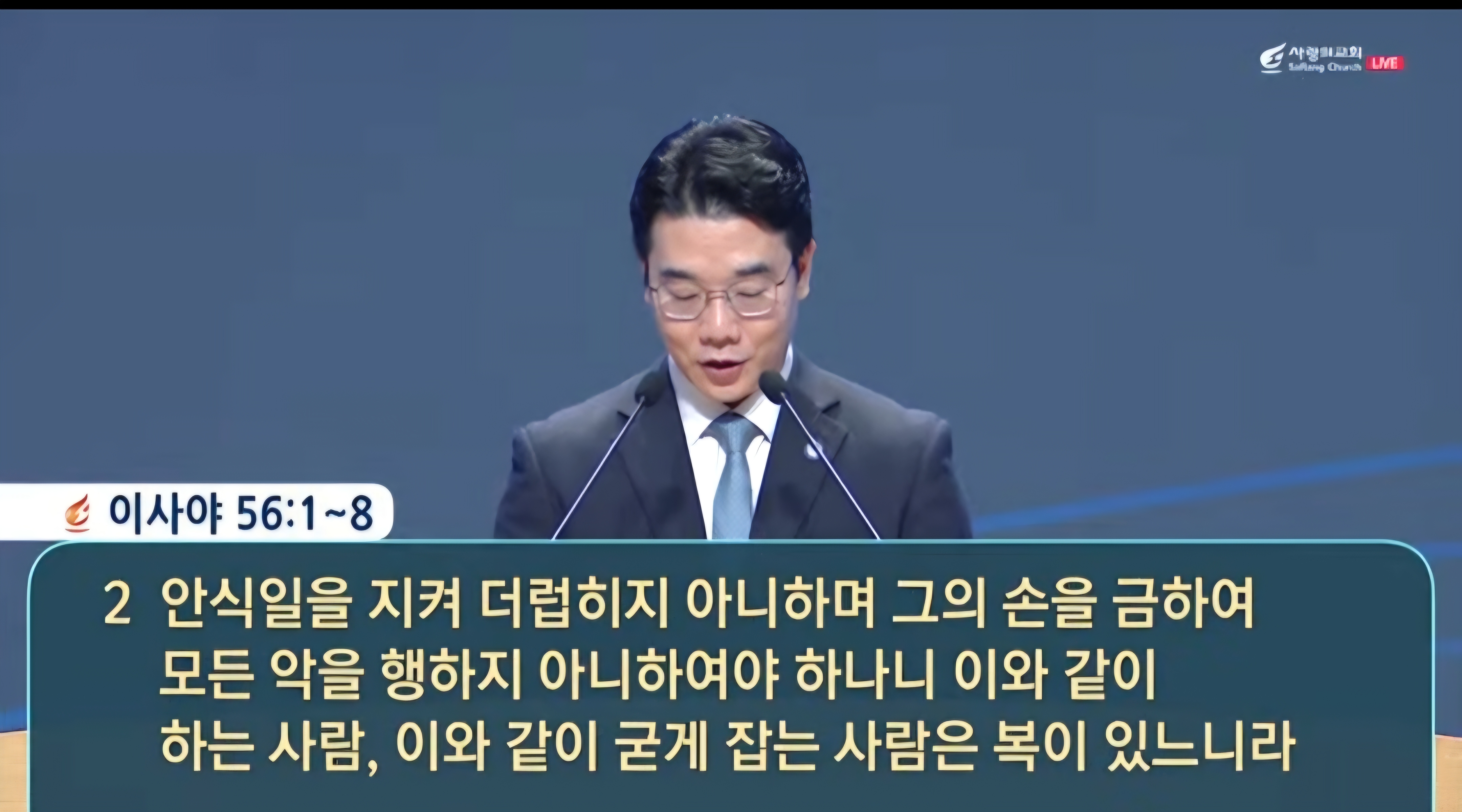 -나의 구원이 가까이 왔고, 그랬습니다. 나의 구원이 가까이 왔고 먼저 하나님께서는 이 복음의 진리와 인간에서 나의 구원이라 그러셨어요. 이 구원은 인간의 방식이 아니라, 하나님의 구원 방식이라고 말씀하시는 거예요. 그래서 오늘이 구원에 대한 우리의 생각과 우리의 의, 우리의 어떤 우리의 어떤 사고 방식과는 하나님의 구원의 방식과는 다르다는 거예요. 앞에 이사야 55장에 뭐라고 말씀하느냐? 이 이 놀라운 말씀이 나와요. 함께요.