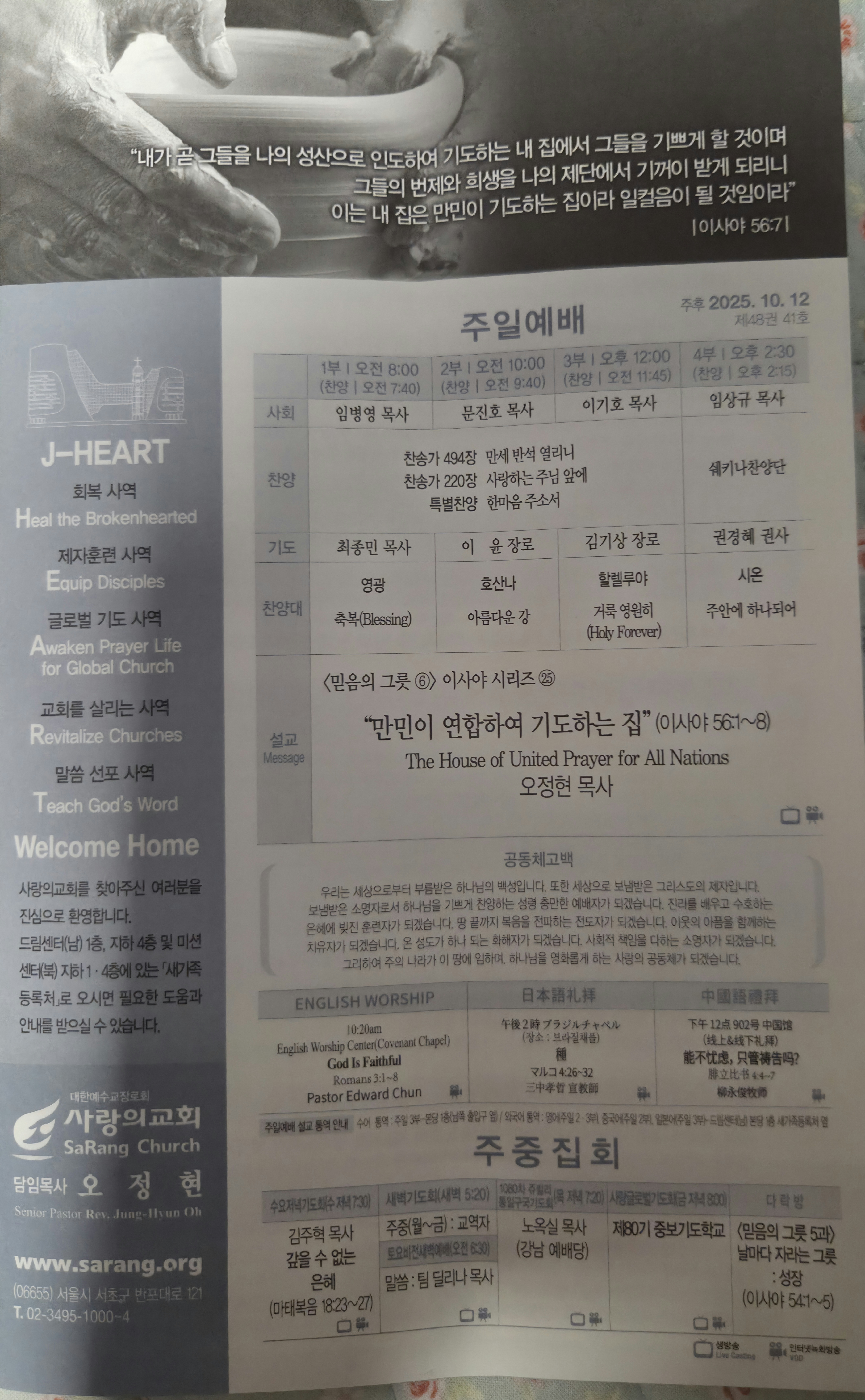 ♣주일예배(주후 2025년 10월 12일)-‘믿음의 그릇’ 이사야 시리즈㉕