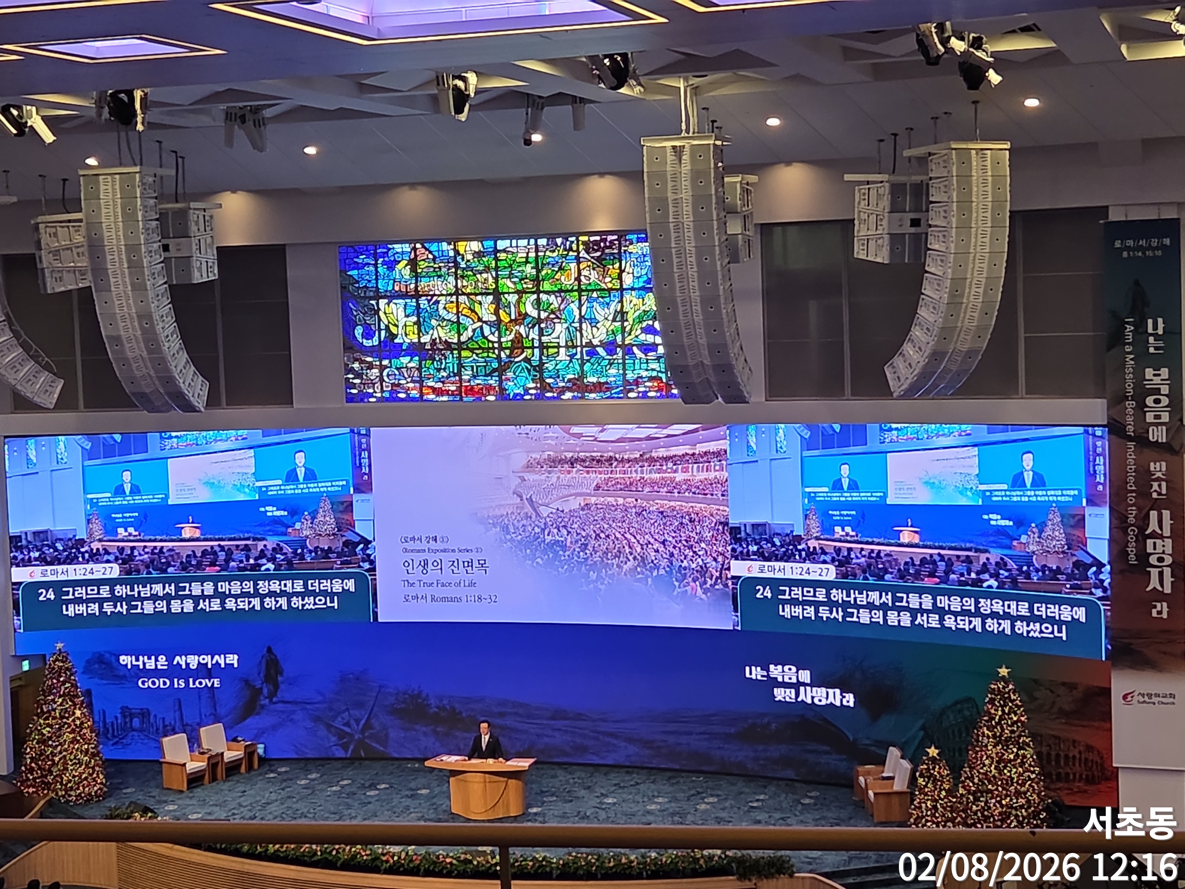 ♣주일예배(주후 2026년 2월 8일)-(로마서 강해 ③) 제목: "인생의 진면목" 말씀: 로마서 1:18-32 찬양인도: 쉐키나(이동선 부목사님-3부) 대표기도: 임영태 장로님 사회: 장단희 부목사님(3부) 설교자: 오정현 담임목사님 ----- *로마서 1:18-32, 18 하나님의 진노가 불의로 진리를 막는 사람들의 모든 경건하지 않음과 불의에 대하여 하늘로부터 나타나나니. 19 이는 하나님을 알 만한 것이 그들 속에 보임이라 하나님께서 이를 그들에게 보이셨느니라. 20 창세로부터 그의 보이지 아니하는 것들 곧 그의 영원하신 능력과 신성이 그가 만드신 만물에 분명히 보여 알려졌나니 그러므로 그들이 핑계하지 못할지니라. 21 하나님을 알되 하나님을 영화롭게도 아니하며 감사하지도 아니하고 오히려 그 생각이 허망하여지며 미련한 마음이 어두워졌나니 22 스스로 지혜 있다 하나 어리석게 되어. 23 썩어지지 아니하는 하나님의 영광을 썩어질 사람과 새와 짐승과 기어다니는 동물 모양의 우상으로 바꾸었느니라. 24 그러므로 하나님께서 그들을 마음의 정욕대로 더러움에 내버려 두사 그들의 몸을 서로 욕되게 하게 하셨으니. 25 이는 그들이 하나님의 진리를 거짓 것으로 바꾸어 피조물을 조물주보다 더 경배하고 섬김이라 주는 곧 영원히 찬송할 이시로다 아멘. 26 이 때문에 하나님께서 그들을 부끄러운 욕심에 내버려 두셨으니 곧 그들의 여자들도 순리대로 쓸 것을 바꾸어 역리로 쓰며. 27 그와 같이 남자들도 순리대로 여자 쓰기를 버리고 서로 향하여 음욕이 불 일듯 하매 남자가 남자와 더불어 부끄러운 일을 행하여 그들의 그릇됨에 상당한 보응을 그들 자신이 받았느니라. 28 또한 그들이 마음에 하나님 두기를 싫어하매 하나님께서 그들을 그 상실한 마음대로 내버려 두사 합당하지 못한 일을 하게 하셨으니. 29 곧 모든 불의, 추악, 탐욕, 악의가 가득한 자요 시기, 살인, 분쟁, 사기, 악독이 가득한 자요 수군수군하는 자요. 30 비방하는 자요 하나님께서 미워하시는 자요 능욕하는 자요 교만한 자요 자랑하는 자요 악을 도모하는 자요 부모를 거역하는 자요 31 우매한 자요 배약하는 자요 무정한 자요 무자비한 자라. 32 그들이 이같은 일을 행하는 자는 사형에 해당한다고 하나님께서 정하심을 알고도 자기들만 행할 뿐 아니라 또한 그런 일을 행하는 자들을 옳다 하느니라. ----- ▶할렐루야. 저는 오늘 로마서 강해, 세 번째, “인생의 진면목” 그리고 인생의 민낯, 인생의 생얼을 말씀하겠는데, 여러분들이 1장 오늘 18절부터 32절, 15절인데요. 앞부분하고 뒷부분에 읽었습니다 만은 이 하나님 말씀은 살았고 운동력이 있는 것이에요. 그래서 중간은 안 읽었는데 일부러 자우 같이 읽으려고 안 읽었어요. 24절부터 27절까지를 저와 같이 한번 더 함께 교독 하도록 하겠습니다. 여기 보니까, 여러분 로마이 로마 시대인데, 로마 시대의 황제 초기의 황제 15명 가운데 14명이 동성애자들이었어요. 그러니까? 로마의 그 찬란한 문화가 사실은 밑으로는 굶고 썩고 있었던 것이에요. 오늘 이런 말씀들을 통하여 우리 개인적으로도 우리 모두에 오늘 회중 찬송했잖아요. 그 우리 ‘마음속에 더러운 죄를 그대는 씻기어 있는가?’ 오늘 그리스도의 보혈의 능력이 분명하고 확실하게 오늘이 말씀을 듣는 본당 별관 또 여러 방송 듣는 여러분들에게 마음속에 수많은 더러운 저들이 그리스도의 보혈의 능력으로 정결하게 되는 능력을 오늘 체험하기를 소망하는 것입니다. 오늘 제가 이 말씀을 근거로 여러분들이 좀 생각할 기회를 드리겠는데 먼저 17절 앞에 본문에 보니까? *로마서 1:17a, 17 복음에는 하나님의 의가 나타나서 ... *로마서 1:18, 18 하나님의 진노가 불의로 진리를 막는 사람들의 모든 경건하지 않음과 불의에 대하여 하늘로부터 나타나나니 -뭐가 나타났죠? 의가 나타났다. 오늘 18절을 읽었는데 그런데 18절에는 뭐라고 냐? 하나님의 뭐예? 진노가 나타났다. 이 나타났다는 이 단어가 굉장히 강력한 단어예요. 하나님의 진노가 나타나고 복음으로는 하나님의 의가 나타났다.이 두 가지는 서로 연결가 돼 있고 또 구별도 돼 큰 구별이 있어요. 나타난다는 이 말이 현재 시대 지금 그렇다. 했지만 과거가 아니라 지금 하나님의 의는 피의 복음을 믿을 때마다. 예수님의 의가 우리에게 전가된 줄로 믿습니다. 이 말이에요. 지금, 지금 그런데 동시에 하나님의 진노는 창세 때부터 지금까지 사람들이 죄를 저지르기 때문에 계속 나타나는 것이에요. 그리고 하나님의 진노를 유발하는 제일 key와 핵심 중에 하나가 오늘 18절에 뭐라하냐면, *로마서 1:18, 18 하나님의 진노가 불의로 진리를 막는 사람들의 모든 경건하지 않음과 불의에 대하여 하늘로부터 나타나나니 -우리는 진리로 불의를 막을지언정, 불의로 진리를 막는 이런 일들이 우리에게 일어나지 않기를 를 바라는 것이에요. 그런데 사실 오늘 현재 가운데 오늘 하나님의 진노를 유발하는 많은 일들이 있는 것이에요. 역사의 진리를 왜곡하는 사람들, 그리고 진리를 거스리고 거짓을 진짜처럼 믿는 사람들, 이 눈물난 일이고 가슴이 너무 아픈 일이고 어떨 때면요. 제가 밤잠을 거칠할 정도로 분통 터진 일