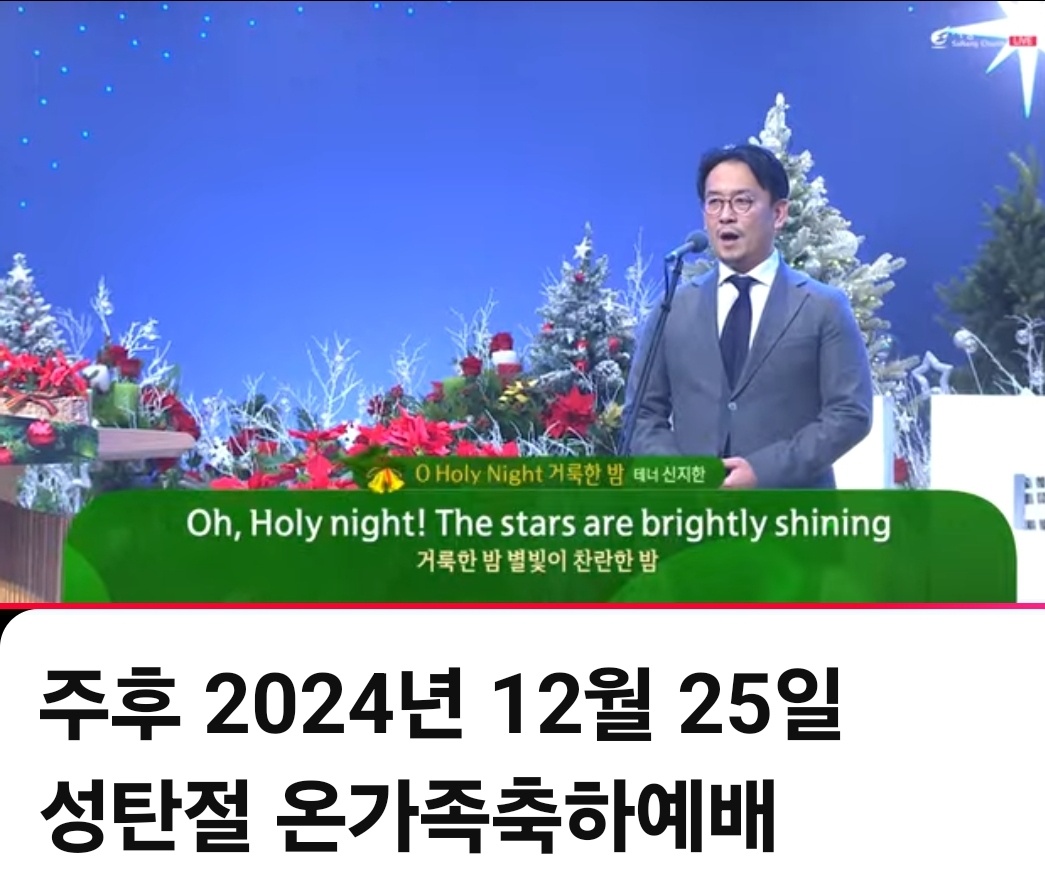 | ☆ ♣성탄예배(주후 2023년 12월 25일)"예수님이 왜 이 땅에 오셨나?"(오정현 담임목사님)-사랑의 교회 ☆ (0) | 2023.12.25 |