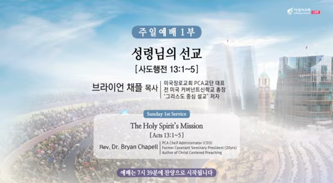 ☆ ♧주일예배(주후 2024년 6월 30일)"성령(聖靈)님의 선교(宣敎)"(브라이언 채플 목사님)-사랑의 교회 ☆