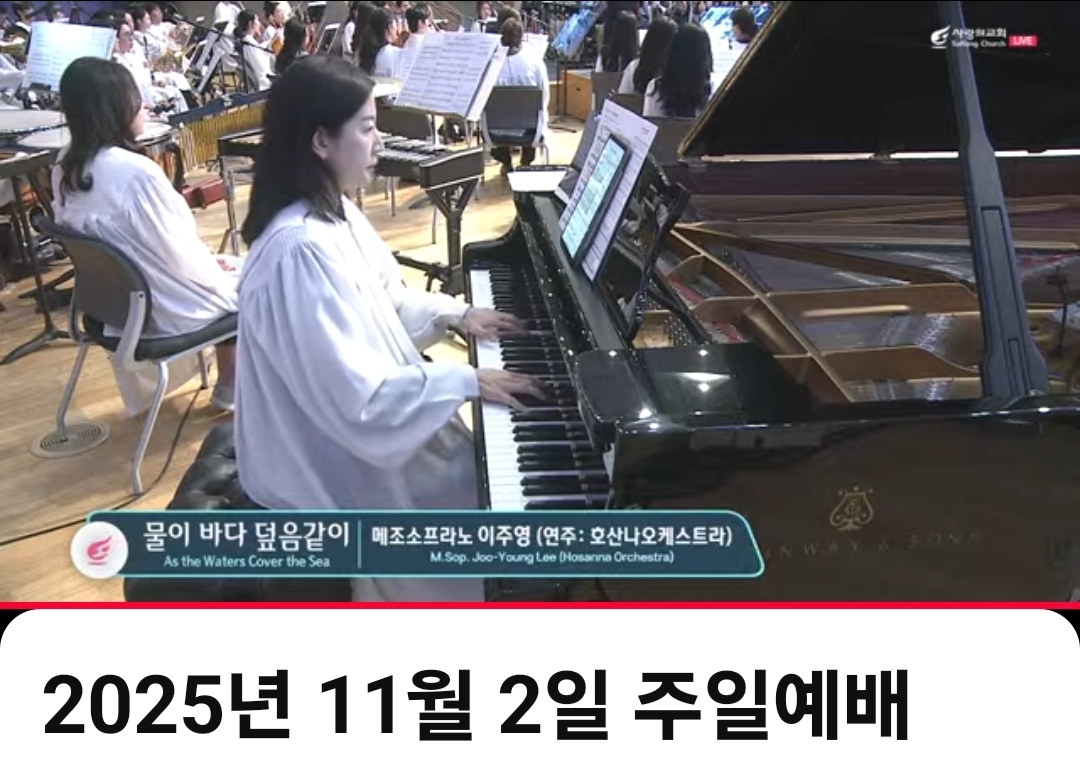 ▶할렐루야!. 찬양대가 고백한 대로 오늘 예배를 통하여 주님만의 높임을 받으시기를 바라고 하나님의 강력한 뜻이 우리 성도들에게 삶의 여정에 그대로 펼쳐지기를 소망합니다. 지금 우리 교회는 우리 2주간 또 3주간의 특새(특별새벽기도회)의 기쁨과 그리고 ‘우리 한국 교회 섬김의 날’ 특별히 ‘WEA 세계 총회’를 섬긴 은혜와 영광의 여진이 우리에게 있는 줄로 믿습니다.