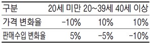 20~39세의 고객들은 가격이 10% 상승했을 때 수요량을 15% 감소시켜 판매 수입이 5% 감소했다. 따라서 20~39세 고객층의 가격 탄력성 역시 1보다 크다. 40세 이상의 고객들은 가격이 10% 상승했을 때 수요량을 20% 감소시켜 판매 수입이 10% 감소했다. 따라서 40세 이상의 고객층 역시 가격 탄력성이 2이므로 수요의 가격 탄력성이 1보다 크다. 정답은 ④ |