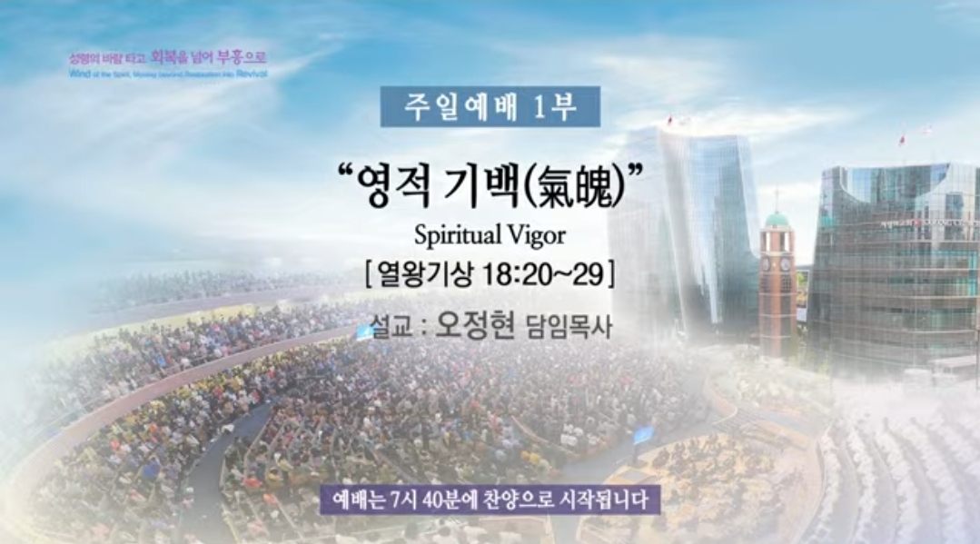 주일예배(주후 2023년 1월 29일) 제목: "영적 기백(氣魄)" 말씀: 열왕기상 18:20~29 찬양인도: 쉐키나(이다니엘 부목사님),영광찬양대 대표기도: 유이삭 부목사님(1부) 사회: 천동원 부목사님(1부) 설교자: 오정현 담임옥사님 ㅡㅡㅡㅡㅡㅡㅡ *열왕기상 18:20~29, 20 아합이 이에 이스라엘의 모든 자손에게로 사람을 보내 선지자들을 갈멜 산으로 모으니라. 21 엘리야가 모든 백성에게 가까이 나아가 이르되 너희가 어느 때까지 둘 사이에서 머뭇머뭇 하려느냐 여호와가 만일 하나님이면 그를 따르고 바알이 만일 하나님이면 그를 따를지니라 하니 백성이 말 한마디도 대답하지 아니하는지라. 22 엘리야가 백성에게 이르되 여호와의 선지자는 나만 홀로 남았으나 바알의 선지자는 사백오십 명이로다. 23 그런즉 송아지 둘을 우리에게 가져오게 하고 그들은 송아지 한 마리를 택하여 각을 떠서 나무 위에 놓고 불은 붙이지 말며 나도 송아지 한 마리를 잡아 나무 위에 놓고 불은 붙이지 않고. 24 너희는 너희 신의 이름을 부르라 나는 여호와의 이름을 부르리니 이에 불로 응답하는 신 그가 하나님이니라 백성이 다 대답하되 그 말이 옳도다 하니라. 25 엘리야가 바알의 선지자들에게 이르되 너희는 많으니 먼저 송아지 한 마리를 택하여 잡고 너희 신의 이름을 부르라 그러나 불을 붙이지 말라. 26 그들이 받은 송아지를 가져다가 잡고 아침부터 낮까지 바알의 이름을 불러 이르되 바알이여 우리에게 응답하소서 하나 아무 소리도 없고 아무 응답하는 자도 없으므로 그들이 그 쌓은 제단 주위에서 뛰놀더라. 27 정오에 이르러는 엘리야가 그들을 조롱하여 이르되 큰 소리로 부르라 그는 신인즉 묵상하고 있는지 혹은 그가 잠깐 나갔는지 혹은 그가 길을 행하는지 혹은 그가 잠이 들어서 깨워야 할 것인지 하매. 28 이에 그들이 큰 소리로 부르고 그들의 규례를 따라 피가 흐르기까지 칼과 창으로 그들의 몸을 상하게 하더라. 29 이같이 하여 정오가 지났고 그들이 미친 듯이 떠들어 저녁 소제 드릴 때까지 이르렀으나 아무 소리도 없고 응답하는 자나 돌아보는 자가 아무도 없더라. ▶추운 날씨에 이렇게 나올 수 있는 환경과 믿음 주시고 건강 주신 주님을 찬양한다. 축복이다. 회복을 넘어 부흥으로 시리즈 11번째이다. 지난주에 고향 교회를 가니까 제목이 거기도 “회복을 넘어 부흥으로”였다. 반갑기도 하고 한편으로는 사랑의 교회를 따라 하는 것은 아니냐고 하고, 좀 창의력이 없는 것이 아니냐고 그 담임 목사님이 기가 막힌 대답을 하셨다. “이것보다 더 좋은 표어가 어디 있습니까?” 하시며 그리고 “한국교회 모든 교회들이 가장 절실하게 기도해야 할 제목입니다.”라고 하셨다. 그래서 그렇게 이야기를 하시니 그 반을 듣고 제가 너무 감사했다. 오늘 이 회복을 넘어 이 시리즈는 우리 개인의 어떤 공동체 사고일 뿐만이 아니라, 우리 개인도 이 제목을 통해 많은 문제가 해결되기를 바란다. 오늘 제목은 영적기백(氣魄)이다. 찬송할 때, ‘믿는 사람들은 주의 권세이니’ 할 때 어떤 분들은 기운 있게 ‘앞서 가신 주를 따라갑시다.’ 라고 하는데 어떤 분들은 이게 무슨 찬송인지도 몰라 하신 분들도 있다. 하여튼 오늘 주님께서 주시는 말씀으로 완전한 기백이 회복되기를 바란다. ‘회복으로 넘어 부흥’으로 가는 이 과정에 꼭 필요한 것은 바로 영적 기백이다. 왜냐하면 이것은 신앙의 엔진이라 말할 수 있다. 여러분, 20-30년 된 차라 할지라도, 오래된 차라 할지라도 엔진이 좋으면 그냥 끄떡 없이 잘 나간다 맞는가? 우리가 개인적으로 나이가 들어가고 또 환경도 바뀌고 시절도 변하지만 영적기백이라는 이 신앙의 과업은 변함이 없는 것이다. 영적기백을 소유하면 나이가 들어가도 환경이나 지역이나 시대나 상관이 없다. 그리고 그리스도인들에게 영적 기백이 왜 이 단어가 필요한가? 우리 입장에서 당장은 ‘회복을 넘어 부흥’으로 가는 엔진이기도 하지만 왜 필요하냐면 예수 믿는 사람들은 신앙인이 되는 그 순간부터 남녀노소 할 것 없이 영적기백이 필요한 이유는 우리가 예수를 믿는 그 순간부터 그리스도인은 예외 없이 영적 전쟁터에 발을 들여놓기 때문인 것이다. 다 영적 전쟁터이다. 여러분들은 신앙생활을 잘하면 우리는 유람선을 타고 가는 것이 아니라, 전투함을 타고 전투를 해야 한다는 것이다. 마귀는 우리 믿는 사람들을 향하여 날마다 우는 사자와 같이 달려드는데, 우리는 만약에 패잔병(敗殘兵)처럼, 정말 당나라 군사들처럼 가만히 있다면 안 된다. 오합지졸(烏合之卒)처럼 있으면 안 되는 것이다. 그러니까 이 영적 전쟁을 우리가 해야 되는데 우리가 막무가내로 아무런 준비가 없이 뛰어들면 안 되고, 그래서 영적기백을 가져야 한다. 이번 주와 다음 주에 걸쳐서 위해 너무 중요하다. 영적기백과 담력을 회복하고 우리 것으로 무장(武將)되는 영광스런 신앙이 되기를 바란다. 저는 오늘 구약의 열왕기상 18장, 여러분이 잘 아는 말씀이지만, 여러분 저는 신구약, 특별히 구약 말씀도 살아계신 하나님의 말씀이라고 확실히 믿는다. 이 21세기의 한국과 서울에 사는 우리들에게 인생의 나침반으로서 이 말씀을 