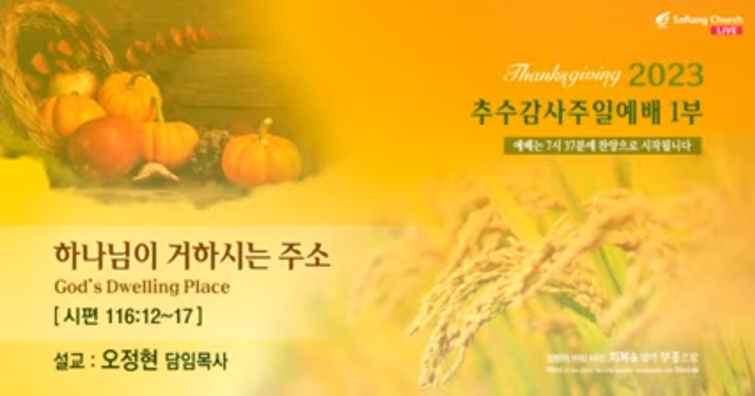 ☆ 주일예배(주후 2023년 11월 05일)"하나님이 거하시는 주소"( 오정현 담임목사님)-사랑의 교회 ☆