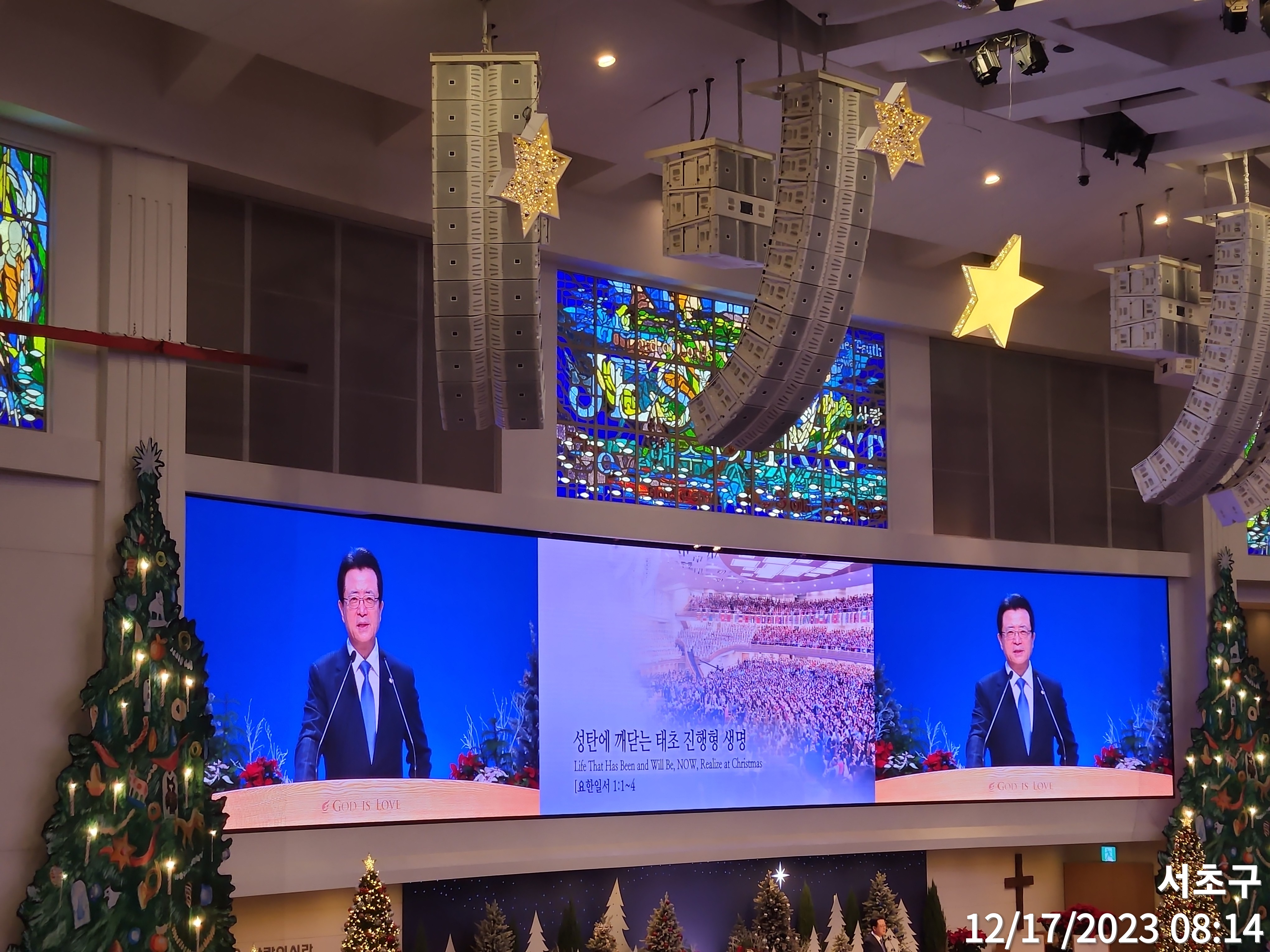 주일예배(주후 2023년 12월 17일) 제목: "성탄에 깨닫는 태초 진행형 생명" 말씀: 요한일서 1:1~4 찬양인도: 쉐키나(이 다니엘 부목나님), 영광찬양대 대표기도: 안승훈 부목사님(1부) 사회: 천동원 부목사님(1부) 설교자: 오정현 담임목사님 ㅡㅡㅡㅡㅡ *요한일서 1:1~4, 1 태초부터 있는 생명의 말씀에 관하여는 우리가 들은 바요 눈으로 본 바요 자세히 보고 우리의 손으로 만진 바라. 2 이 생명이 나타내신바 된지라 이 영원한 생명을 우리가 보았고 증언하여 너희에게 전하노니 이는 아버지와 함께 계시다가 우리에게 나타내신바 된 이시니라. 3 우리가 보고 들은 바를 너희에게도 전함은 너희로 우리와 사귐이 있게 하려 함이니 우리의 사귐은 아버지와 그의 아들 예수 그리스도와 더불어 누림이라. 4 우리가 이것을 씀은 우리의 기쁨이 충만하게 하려 함이라. ------- ▶정말 이 영하의 강추위를 뚫고 여러분 나오셨는데 아무도 그냥 돌아가지 말았으면 좋겠습니다. 거룩한 기대감을 가지고 이 안아주신 본당에 오신 여러분 성탄의 확실한 기쁨을 분명히 체험되기를 바랍니다. 우리 지금 성탄의 절정기 이제 한 주일 남겨놓고 있는데 한국 사회는 한 몇 십 년 만에 후진국 중진국 선진국을 다 경험을 했어요. 문제는 뭐냐 하면 이렇게 하다 보니까 세대 간의 개성이랄까, 어떤 공통점이 쉽지가 않아요. 우리 지금 아이들은 이렇게 유리창 지나가면서 일을 하잖아요. 이렇게 스마트폰 이래 하면 다 나오니까 근데 어른들은 그거 쉽지가 않은데요. 그러나 한 가지 중요한 것은 이 성탄의 진리와 기쁨이 온 세대가 공유되기를 바라는 것입니다. 온 세대가 그래서 이번 주 다음 주 또 다음 주로 성찬식도 하고 또 25일 날 성탄 축하 예배드릴 터인데, 이 세 번에 걸쳐서 한국교회가 어른 세대나, 우리 자녀 세대나 공유할 수 있는 성탄의 확실한 진리와 기쁨이 충만하기를 바랍니다. 오늘 말씀의 제목을 “성탄에 깨닫는 태초 진행형 생명”이다. 그래서 한 번 들으면 무슨 말인가 잘 이해가 안 될 텐데 이런 뜻입니다. 오늘 1장 1절에 태초부터 있는 생명의 말씀에 관하여는 이렇게 나와 있죠. 태초부터 있는 생명의 말씀 이렇게 하려고 하다가, 그것만으로 끝나지 말고 이것이 오늘 내게 그대로 접목되고 확인되고 내 것으로 체험되게 하여 주십시오. 그런 의미에서 태초 진행형 생명이 되게 하여 주십시오. 그렇게 이제 제목을 붙였는데 이런 뜻입니다. 하나님의 말씀은 우리가 기록된 말씀으로만 있어서는 안 됩니다. 이 기록된 말씀이 지금 우리에게 깨닫게 하시고 지금 우리를 변화시키는 말씀이 돼야 하는 것이에요. 이걸 일으켜서 기록된 말씀은 뤼튼 워드(Written Word) 기록되어 있죠? 그것은 예를 들어서 오늘 이 우리 육신의 차원입니다. 그런데 이것이 지금 나에게 하시는 말씀, 지금 나를 변화시키는 말씀은 세이 워드(Say word), 소위 ‘레마’의 말씀이다. 이런 말씀을 많이 하는데, 베드로에게 주님께서 ‘야 그물을 깊은 데 가서 내리라.’ 그러는데 베드로 입장에서는 지금 오전 10시쯤 돼갖고 깊은 데 그물 내려오면 고기 없어요. 자기 생각에는 그렇지만 자기의 생각과 경험과 이성을 뛰어넘는 ‘주님의 말씀이니까 듣겠습니다.’ 하고 그 말씀이 베드로에게 역사하는 말씀이 되었을 때, 베드로에게 처음 드는 말씀이 되었을 때, 그걸 레마의 말씀이다. 이런 말씀하는데 오늘 이 말씀이 기록된 말씀으로 끝나지 말고, 저와 여러분에게 지금 체험된 말씀이 되기를 간절히 바라는 것이에요. 그래서 오늘 제가 이 요한 사도의 말씀을 여러분들과 같이 나누는데, 제가 지난번에 요한의 말씀은 굉장히 신비한 ‘영적 언어’라고 그랬어요. 이건 우리의 영의 눈이 열려야 된다고 말씀을 드린 것이에요. 예를 들어서, 사도바울이 하는 역할이 있고, 베드로가 하는 역할이 있고, 요한이 하는 역할이 있는데, 1. 베드로가 하는 역할은 여러분 아시는 대로 베드로는 스타트 끊는 사람이고 천국 열쇠를 가졌고 예루살렘 공교회를 세워가지고 시작하는 은사를 받았어요. 시작의 은사를 받았어요. 다시 베드로가 뭘 은사를 받았다고요? 시작은 우리들 가운데 그런 사람이 있잖아요. 2. 바울은 어떤 사람이냐? 바울은 고린도서에 보면 지혜로운 건축자 이런 말이 나오는데 바울은 세우고 집을 짓는 은사를 받았어요. 그래서 저 자유주의 신학자들이 제일 싫어하는 사람이 바울이에요. 기독교를 비방하는 사람들이 제일 싫어하는 사람들이 바울이에요. 바울이 기독교의 모든 교리와 토대를 세운 것이에요. 3. 근데 요한이 한 일이 뭐냐? 요한이 예수님께서 요한을 불렀을 때, 이 이 신비로운 요한일서 이 말씀을 기록한 요한이 한 일이 뭐냐, 요한은 예수님이 요한을 불렀을 때 어떤 때 예수 요한을 불렀을까요? 마가복음에 보면, 요한을 보시니 그들도 배에 석 그물을 어떻게 하는데요? 깁는데, 부르셨다. 여기에 중요한 뜻이 담겨 있는데 그물을 깁고 있는데 예수님께서 요한을 불렀어요. -무슨 바다에 나가 있을 때도 아니고 다른 거 할 때가 아니라 그물을 깁는다는 말이 영어로 맨딩(mending)한다. 그물을 고친다. 그물을 찢어진 곳을 다시 이렇게 메꾼다. 이런 뜻이 
