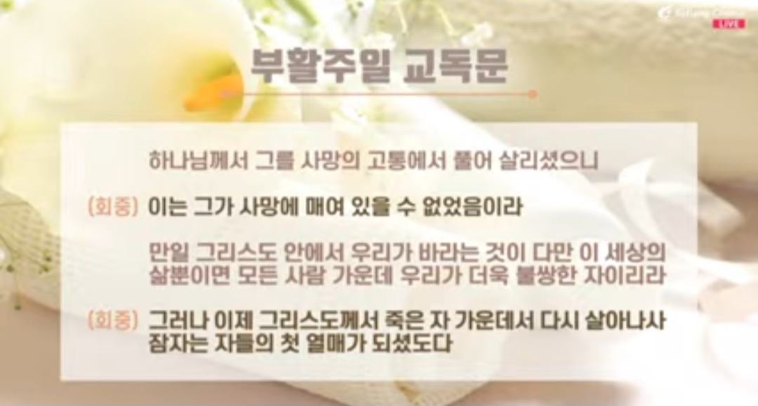 -여러분, 찬란한 하나님의 영광을 목도하고 납작 엎드릴 때, 죽은 듯이 되는 것은 우리는 하나님의 거룩한 기품이 되고 체화되고 우리의 것으로 여겨지게 되는 것이다. 오늘 본당에 들어오기 전에 세상의 거품을 뒤집어쓰고 지친 얼굴로 들어오면 이 영광스런 부활주일 날, 말씀과 찬양과 기도를 통하여 하나님의 찬란한 영광을 목도하고 그 앞에 마음을 납작 엎드려서 마치 죽은 자처럼 되어서, 호스네크로스, 그럴 때 하나님의 형상을 닮아 기품이 인생이 될 줄 믿는다.