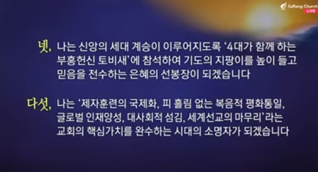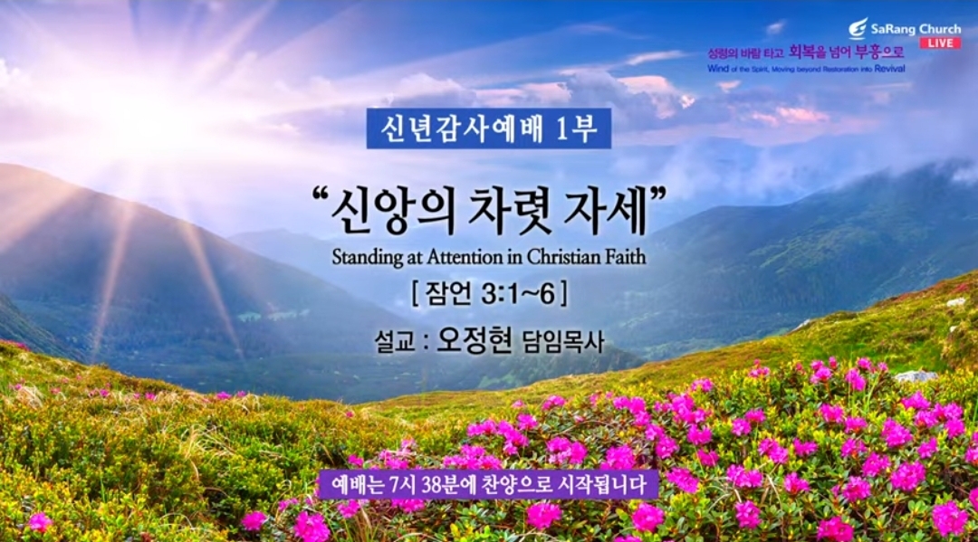 주일예배(주후 2023년 1월 1일)-회복을 넘어 부흥으로 일곱 번째 강해. 제목: "신앙의 차렷 자세"-신년 감사 주일 말씀: 잠언 3:1~6 대표기도: 장명철 부목사님(1부) 찬양인도: 쉐키나(이 다니엘 부목사님), 영광찬양대 사회: 천동원 부목사님(1부) 설교자: 오정현 담임목사님 --------------- *잠언 3:1~6, 1 내 아들아 나의 법을 잊어버리지 말고 네 마음으로 나의 명령을 지키라. 2 그리하면 그것이 네가 장수하여 많은 해를 누리게 하며 평강을 더하게 하리라. 3 인자와 진리가 네게서 떠나지 말게 하고 그것을 네 목에 매며 네 마음 판에 새기라. 4 그리하면 네가 하나님과 사람 앞에서 은총과 귀중히 여김을 받으리라. 5 너는 마음을 다하여 여호와를 신뢰하고 네 명철을 의지하지 말라. 6 너는 범사에 그를 인정하라 그리하면 네 길을 지도하시리라. =============== ▶새해 초부터 새 마음까지 사랑하는 성도들, 영 가족 여러분들의 마음의 소원과 계획을 사랑하는 목자 되시는 하나님께서 꼭 응답하시고 풍성한 결실로 나타내 주시길 바란다. 오늘은 ‘신앙의 차렷 자세’에 대해서 주님의 메시지를 나누도록 하겠다. 오늘 본문은 제가 젊을 때부터 평소에 소중하게 생각하는 말씀이고, 늘 저로 하여금 신앙생활에 기본으로 하게 하는 말씀이다. 기본이 얼마나 중요한가? 마치 이것은 신앙의 차렷 자세의 기본이라 할 수 있다. 군대에서 훈련할 때에, 항상 기본이 차렷 자세부터 시작한다. 뒤로 돌아 한 다음에 우양 우 좌 양좌 하지 않고, 그것을 하기 이전에 반드시 차렷을 먼저 하고 우양 우, 좌 양좌 한다. 격려할 때도 차렷 자세를 먼저 한다. 우리 학교 다닐 때, 반장을 해 본 사람은 잘 할 것이다. 수업할 때 선생님들이 ‘차렷’ 하고 주목을 시킨다. 그래서 오늘은 새해 첫 주, 신앙의 차렷 자세를 나누려고 한다. 저는 성도님들을 섬기고 목회를 하면서 나름대로 갖는 평생의 법칙이 있다. 그게 뭐냐면 오늘 본문의 ‘신앙의 차렷 자세’가 딱 자리가 잡히면 언제든지 다시 시작할 수 있는 은혜가 받는다. 이 신앙의 차렷 자세가 자리가 딱 잡히면, 어떤 상황에서도 언제든지 다시 시작할 수 있는 은혜를 주시는 것이다. 우리 성도들 가운데 인생의 난제 앞에서 많은 어려움을 겪는다 하더라도 저는 그때마다 “하나님, 우리 성도들을 난제들이 있지만, 다시 시작할 수 있는 은혜를 받게 하여 주십시오.” 라고 기도한다. 왜냐하면 우리의 과거를 돌아보면, 모두가 실패의 상징물을 하나씩을 가지고 있다. 예수님을 실망 시킨 순간의 일을 떠올리는 그런 사건들이 하나씩 있을 것이다. 우리의 어리석은 행동이나 부주의한 말 때문에 일어나는 떠올리고 싶지 않은 순간들이 있을 것이다. 베드로 같은 경우는 추운 몸을 녹이려고 쬐였던 모닥불에 있다. 그는 모닥불 숯불만 보면 예수님을 세 번이나 부인하고 예수님을 실망시킨 순간이 생각났을 것이다. 그러나 우리 주님은 그 실패의 모닥불을 다시 회복의 모닥불로 만들어 주신 줄로 확신한다. 요한복음 21장에는 부활하신 예수님께서 모닥불을 지피시고 생선을 구우시고 베드로에게 조반을 들라고 하신다. 그 순간 베드로의 모닥불의 실패의 트라우마가 사라지는 순간이 되었다. 베드로에게 있어서 실패의 모닥불이 회복의 모닥불이 되었기 때문에 다시 시작할 수 있는 힘을 얻게 된 것이다. 제가 늘 말씀을 드린 대로 우리가 어떤 생애에 문제와 난관이 닥치더라도 모두가 주님의 십자가 앞에 엎어지면, 주님의 발 앞에 엎드리기만 하면, 언제든지 다시 시작할 수 있는 힘을 주심을 확신한다. 여러분의 실패의 모닥불의 회복의 모닥불로 만들어 주시는 주님을 신뢰하라. 이것이 우리가 지켜야 할 신앙의 차렷 자세이고, 영적 전쟁의 배수의 진이고, 굳게 붙잡아야 할 부흥의 법칙이라고 할 수 있다. 그래서 오늘 본문에서 언제든지 다시 시작할 수 있는 신앙의 첫 자세가 무엇일까? 1절에 보면, *잠언 3:1, 1 내 아들아 나의 법을 잊어버리지 말고 네 마음으로 나의 명령을 지키라. -하나님의 법, 하나님의 법칙을 잊어버리지 말라고 하신다. 우리가 세상살이 하는 데에 나름대로 법칙과 원리가 있다. 건강을 위하면 건강의 법칙이 있다. 균형 있는 시간에 식사를 맞추어 하고, 적절한 수명을 취하고, 또 나름 운동을 해야 건강을 유지할 수 있듯이 그런 법칙을 다 깨고 퍼져버리면 힘들다. 약간의 긴장을 가지고 몸을 지켜야 한다. 이것이 건강을 유지하는 것이다. 이것이 건강의 법칙이라고 말할 수 있다. 물고기는 물속에 살아야 하는 법칙이 있고, 공중에 새는 대기권 하늘에 사는 법칙이 있다. 나무는 땅 아래에 뿌리를 흙속에 내리는 법칙이 있다. 물고기가 물이 싫다고 뛰어나오면 안 된다. 공중의 새가 하늘이 싫다고 갑자기 물속에 들어오면 안 된다. 죽는다. 나무뿌리가 땅 속에서 위로 나오면 죽는다. 이것이 하나님의 법칙이고, 창조의 질서라고 말할 수 있다. 이런 법칙과 이런 기본 차렷 자세가 지켜져야 한다. *잠언 3:2 2 그리하면 그것이 네가 장수하여 많은 해를 누리게 하며 평강을 더하게 하리라. -오늘 이 신년에 첫 주일이다. 오늘 여러분들에게 여러분들의 말씀으로 와 닿기를 원한다. 지금 