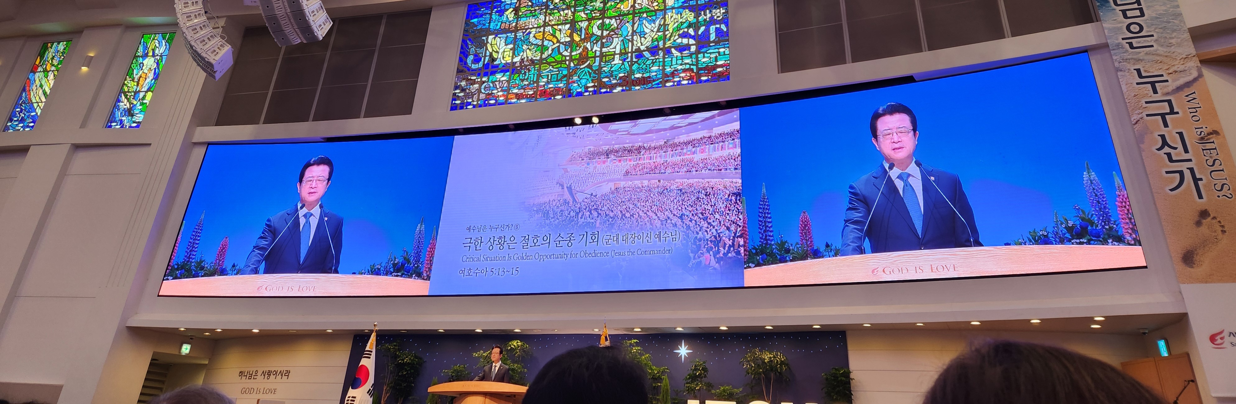 *여호수아 5:13~15, 13 여호수아가 여리고에 가까이 이르렀을 때에 눈을 들어 본즉 한 사람이 칼을 빼어 손에 들고 마주 서 있는지라 여호수아가 나아가서 그에게 묻되 너는 우리를 위하느냐 우리의 적들을 위하느냐 하니. 14 그가 이르되 아니라 나는 여호와의 군대 대장으로 지금 왔느니라 하는지라 여호수아가 얼굴을 땅에 대고 엎드려 절하고 그에게 이르되 내 주여 종에게 무슨 말씀을 하려 하시나이까. 15 여호와의 군대 대장이 여호수아에게 이르되 네 발에서 신을 벗으라 네가 선 곳은 거룩하니라 하니 여호수아가 그대로 행하니라. ----- ▶사랑의 교회 찬양대 찬양을 주님이 기뻐 받으신 줄로 믿습니다. 오늘이 우리 3.1절 105주년이 되는 주일입니다. 그 당시 우리나라는 잿빛 어둠이 없고 희망이 없는 역사였는데 그 가운데 3.12 독립선언서는 자주독립 때문에 그중에 34명이 민족 지도자 가운데 16분, 반이 크리스천입니다. 놀라운 일이죠. 오늘 우리가 귀한 주일날 말씀을 통하여 주님의 음성을 듣고 마음을 모으고 기도하면 이 나라를 살릴 줄로 믿습니다. 동시에 오늘 이 말씀 듣고 여러분 개인도 살고, 교회도 살고, 다시 한 번 이 나라도 살기를 소망합니다. 오늘 말씀의 제목은 ‘극한 상황은 절호의 순종의 기회’에 있다. 라는 제목으로 ‘예수님이 누구신가?’ 시리즈 다섯 번째 말씀을 전합니다. -우리가 예수님 시리즈를 시작하면서 *첫 번째는 예수님은 완전한 신성과 인성을 갖추신 분이시다. *두 번째는 예수님은 우리에게 생명나무가 되셨다. *세 번째는 주님은 우리에게 반석이 되신다. *네 번째는 주님은 성막 되신 예수님 *다섯 번째는 주님은 군대대장 되신 예수님. 지저스 크라이스트 이즈 더 커멘드(Jesus Christ is the Great Commander). 예수님은 큰 군대 대장이시다. 오늘 이 여호수아 이 본문의 말씀은 무슨 뭐 옛날 얘기 무슨 전설이 아니고, 인류 역사의 실제와 동떨어진 것이 아니라, 이때가 이집트는 한참 고대 근동사회에 피라미드를 짓고 있었고 중국은 주나라 시대였고 또 앗수르 제국은 함무라비 법전을 통하여 세계를 호령할 준비가 되어 있던 실제적인 그런 역사의 현장이었습니다. 그래서 오늘 이 사건은 실체적인 역사가 되면 그때도 실제적인 역사 뿐만 아니라 오늘 이 순간 오늘 21세기 이 순간 우리의 삶에도 실제적인 현상이 되기를 바라는 것입니다. 오늘 13절에 보니까 이렇게 나와 있습니다. 3절에, *여호수아 5:13, 13 여호수아가 여리고에 가까이 이르렀을 때에 눈을 들어 본즉 한 사람이 칼을 빼어 손에 들고 마주 서 있는지라 여호수아가 나아가서 그에게 묻되 너는 우리를 위하느냐 우리의 적들을 위하느냐 하니. -여호수아가 여리고에 가까이 이르렀다 이랬습니다. 이제 여호수아는 지도자 모세 지도력으로 바통을 받고, 가나안에 들어가야 되는데 가나의 첫 성이 여리고 성이었습니다. 잘 아시는 대로 지금도 우리 성지 순례 가보면 여리고성은 아주 그 성 자체가 성벽의 두께가 얼마나 두꺼운지, 자동차가 몇 대 지나갈 정도로 그런 성벽의 두께가 있었습니까? 그러니 이스라엘 백성들이 무슨 철 병거를 무장한 것도 아니고 무슨 이렇게 뭐라고 그럴까요? 공성기가 있었던 것들은 성을 공략하는 강력한 이렇게 돌로 막 날리는 거라든지, 무슨 강력한 사다리차가 있다든지, 이런 것들 축성 기계가 있는 것도 아니고, 그러니까 이스라엘의 지도자였던 여호수아 입장에서는 기가 막힌 거예요. 저 강력한 여리고성, 저 강력한 금성철벽을 어떻게 해결해야 하나? 첫 성부터 완전 딱 맞닥뜨려가지고 어떻게 해볼 수 없는 상황, 난공불락(難攻不落)의 성(城), 마치 여호수아 자체가 낭떠러지 앞에서 떨어져 죽을 것 같은 그런 지도력의 위기(危機)가 오는 상황이었습니다. 그러니까 여호수아 자체는 특별하고 대단한 사람이었지만 그러나 그가 이 여리고성을 앞에 놓고 그걸 공략할 만큼 그 정도의, 그 정도의 어떤 저기 모든 걸 가진 사람은 아니었고, 또 여호수아가 강력한 어떤 전투력이 있었지만 이 상황을 감당할 만큼 그의 어깨가 단단하고 튼튼한 것도 아니었어요. 짐이 너무 무거웠기 때문에, 그 짐을 다 지고 갈 만한 그런 어깨는 아니었어요. 그의 어깨가 아무리 넓다 하더라도 그가 짊어진 짐을 혼자서는 감당할 수 없는 그런 상황이었습니다. 그래서 너무 힘들어가지고 혼자서 지도자가 그럴 때 있잖아요. 혼자서 일을 어떻게 하면 좋을까 하고 밤에 여리고성을 이렇게 혼자서 이렇게 가서 이제 어떻게 하면 좋을까? 마치 옛날에 느헤미야가 예루살렘 성전 훼파되었던 것을 ‘이거 어떻게 하면 좋을까? 다시 세워야 할 건데’ 고민하면서 도는(여리고 성을 돌게 되는 상황) 거랑 비슷한 그런 상황이었어요. 아무것도 없는 상황, 그리고 그 앞에 보면 오늘 본문 앞에 보면 무슨 일이 있었냐면 이스라엘 백성들이 가나안에 들어가기 전에 하나님께서 그들을 거룩하게 하시려고 물론 그렇게 하셨습니다마는 실제 현장은 남자들에게는 할례를 행하려 했어요. 남자가 할례를 행하고 나니까 아무런 힘도 없고 그냥 아파서 회복을 기다리고 있는 그런 상황에서 남자, 남자 장정들은 전쟁할 수 있는 지금 그런 