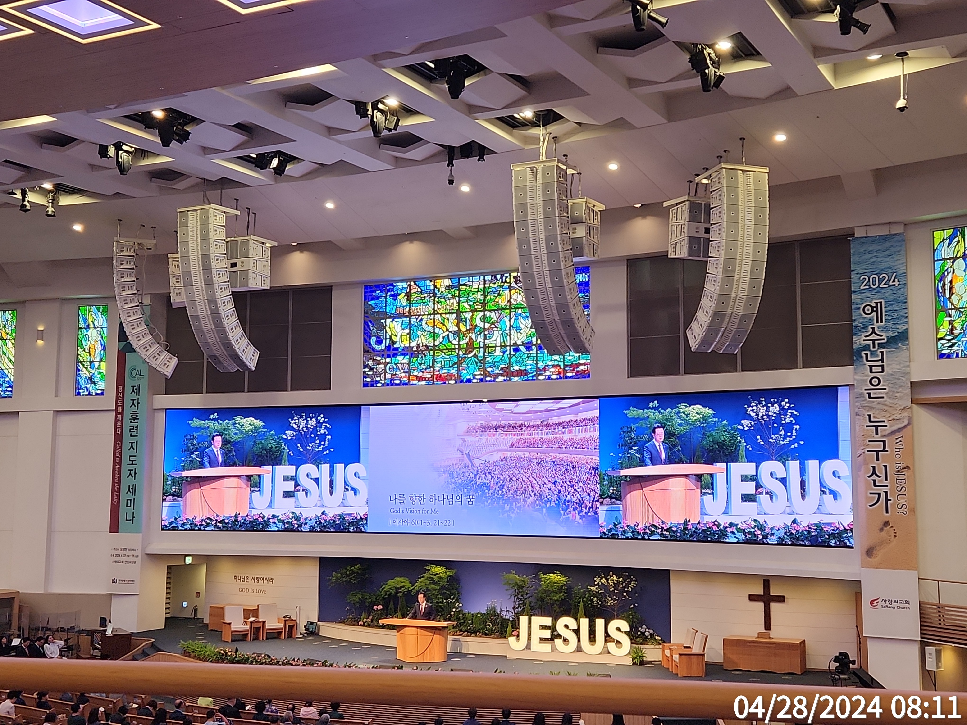 ♣주일예배(주후 2024년 04월 28일) 제목: "나를 향한 하나님의 꿈" 말씀: 이사야 60:1-3, 21-22, 찬양인도: 쉐키나(이 다니엘 부목사님), 영광찬양대(1부) 대표기도: 강대인 부목사님 사회: 임병영 부목사님(1부) 설교자: 오정현 담임목 ㅡㅡㅡㅡㅡ *이사야 60:1-3, 1 일어나라 빛을 발하라 이는 네 빛이 이르렀고 여호와의 영광이 네 위에 임하였음이니라. 2 보라 어둠이 땅을 덮을 것이며 캄캄함이 만민을 가리려니와 오직 여호와께서 네 위에 임하실 것이며 그의 영광이 네 위에 나타나리니. 3 나라들은 네 빛으로, 왕들은 비치는 네 광명으로 나아오리라. *이사야 60:21-22, 21 네 백성이 다 의롭게 되어 영원히 땅을 차지하리니 그들은 내가 심은 가지요 내가 손으로 만든 것으로서 나의 영광을 나타낼 것인즉. 22 그 작은 자가 천 명을 이루겠고 그 약한 자가 강국을 이룰 것이라 때가 되면 나 여호와가 속히 이루리라. ▶할렐루야!! 기도해 주셔서 우리 제자훈련 122기 CAL Semina(Called AwakenSemina)가 성황 중에 잘 성료가 되었습니다. 참관 실습을 위하여 수천 명의 성도들이 함께 참여해 주시고 보이지 않는 자리에서도 순장 반, 그리고 사회 여러 중직 자들이 함께 자리해 주셨습니다. 하나님께 영광을 올려드립니다. 국내에서는 300명 또 외국 분열한 110여 명이 오셨는데요. 전쟁 중에도 우크라이나에서 그의 일이 필요한데 이 그라이나에서 47명이 오셨어요. 베트로 마르티세코라는 라이네의 목사님은 전쟁으로 고통 받는 사람들이 마음이 열려서 지금 교회를 찾아오고 있다. 이제 우크라이나로 돌아가는 전쟁과는 상관없이 제자훈련을 바로 시작할 것이다. 전쟁도 우리의 사역과 사명을 방해할 수가 없다. 라고 하면서 전쟁도 우리의 사역과 사명을 방해할 수가 없다. 그래서 이런 은혜를 주신 주님을 찬양합니다. 어떻게 보면 이런 식이 영적으로 비대칭 전략이죠. 여리고 성을 앞에 놓고 공격을 해야 되는데 그렇게 아니하고 하나님을 묵상하고 마지막에 주님의 명령을 순종한 여리고성과 똑 같다는 생각이 듭니다. 이런 생각을 가지고 국내에도 교단별로 7개 교단 정도 오시고 아주 적은 규모의 교회 목사님도 오셨지만, 1000명에서 4000명 정도의 목사님들이 오셨어요. 제가 8명 정도 대화를 했고, 몸은 피곤하지만 온전한 제자를 만드는 꿈을 꾸니까, 가슴이 뜨거워졌다고 했습니다. 할렐루야!! 저는 이 말을 듣는 제 마음이 뜨거워졌습니다. 그리고 성도들 한 분, 한 분이 목양의 대상이 아니라, 목양 파트너가 된다고 생각하니까, 함께 영광을 올려드립니다. 그래서 오늘 저는 예수님이 누구신가? 시리즈를 잠시 멈추고, 우리 교회 CAL세미나와 하나님 나라를 다시 한 번 정리하기를 원하는 것입니다. ‘평신도를 깨운다.’(Called to Awaken the Laity Discipleship Seminar)는 그런 뜻이 있습니다. 그렇게 아시고 오늘 말씀의 제목은 제가 “나를 향한 하나님의 꿈” 부제는 꿈이 없으면 싸운다. 입니다. -요즘 부모님들의 고민은 자녀들이 꿈도 없고, 목표도 없다는 것이고, 오늘 말씀을 통하여 하나님이 주신 꿈을 확실하게 개인도, 우리 자녀들도, 교회도, 가정도 영광스러운 시간되기를 원합니다. 사랑의 교회 46년 동안 오래 신앙 생활하신 분들은 오늘 본문을 많이 알고 있습니다. 그런데 익숙(益熟)한 부분(部分)에서 진짜 오늘 이 시간 주님이 주시는 보화(寶貨)를 캘 수 있기를 바라는 것입니다. 자, 첫 번째, I. 전에는, 이제는. -오늘 첫 번째는 전에는 이제는, *이사야 60:1-2, 1 일어나라 빛을 발하라 이는 네 빛이 이르렀고 여호와의 영광이 네 위에 임하였음이니라. 이사야 60:15b, 15 전에는 네가 버림을 당하며 미움을 당하였으므로 네게로 가는 자가 없었으나 이제는 내가 너를 영원한 아름다움과 대대의 기쁨이 되게 하리니, -정말 이사 60장의 서두와 마무리는 영광스러운 말씀이에요. 어떻게 보면 독보적인 계신 말씀입니다. 이 말씀은 당시에 이스라엘과 예루살렘을 향한 명령이자 또 오늘 한국 교회 또 하나의 백성들 또 사랑의 교회 선두들 한 분, 한 분에게 하시는 말씀이라고 믿으셔야 합니다. 여러분, 본래 이사야 원래 왕족 출신이고 글 쓰는 솜씨가 뛰어난 시인이였기 때문에 영적인 세계의 높은 수준을 아주 영광스럽고도 우리 식으로 말하는 최고의 글로벌 스탠다드 라고 말씀을 선포했습니다. 이사야가 이 예언의 말씀을 전하고 기록할 때는 이런 최고의 문제를 가지고 문학적 재능을 가지고 이 영광스러운 꿈을 꿀 만한 그런 어떤 낙관론을 펼칠만한 그런 상황이 전혀 아니었습니다. 이 말씀이 적용된 이 시기는 과거 솔로몬의 황금빛 나는 예루살렘 성전은 다 파괴되었고, 마지막 왕 시드기야 왕의 두 눈이 뽑힌 채 바벨론에 끌려갔고, 예루살렘은 잿더미가 되었습니다. 그래서 백성들은 날마다 바벨론에서 포로로 날마다 눈물로 지새우면서 고통 가운데에 있을 때 이 말씀을 선포합니다. 오죽하면 본 15절 중요한 구절인데 15절을 읽지 않았습니다마는, *이사야 60:15a, 15 전에는 네가 버림을 당하며 미움을 당하였으므로 네게로 가는 자가 없었으나 이제는 내가 너를 영원한 아름다움과 대대의 기쁨이 되게 하리니, -전에는, 이제는,,,그러니까 이 상황