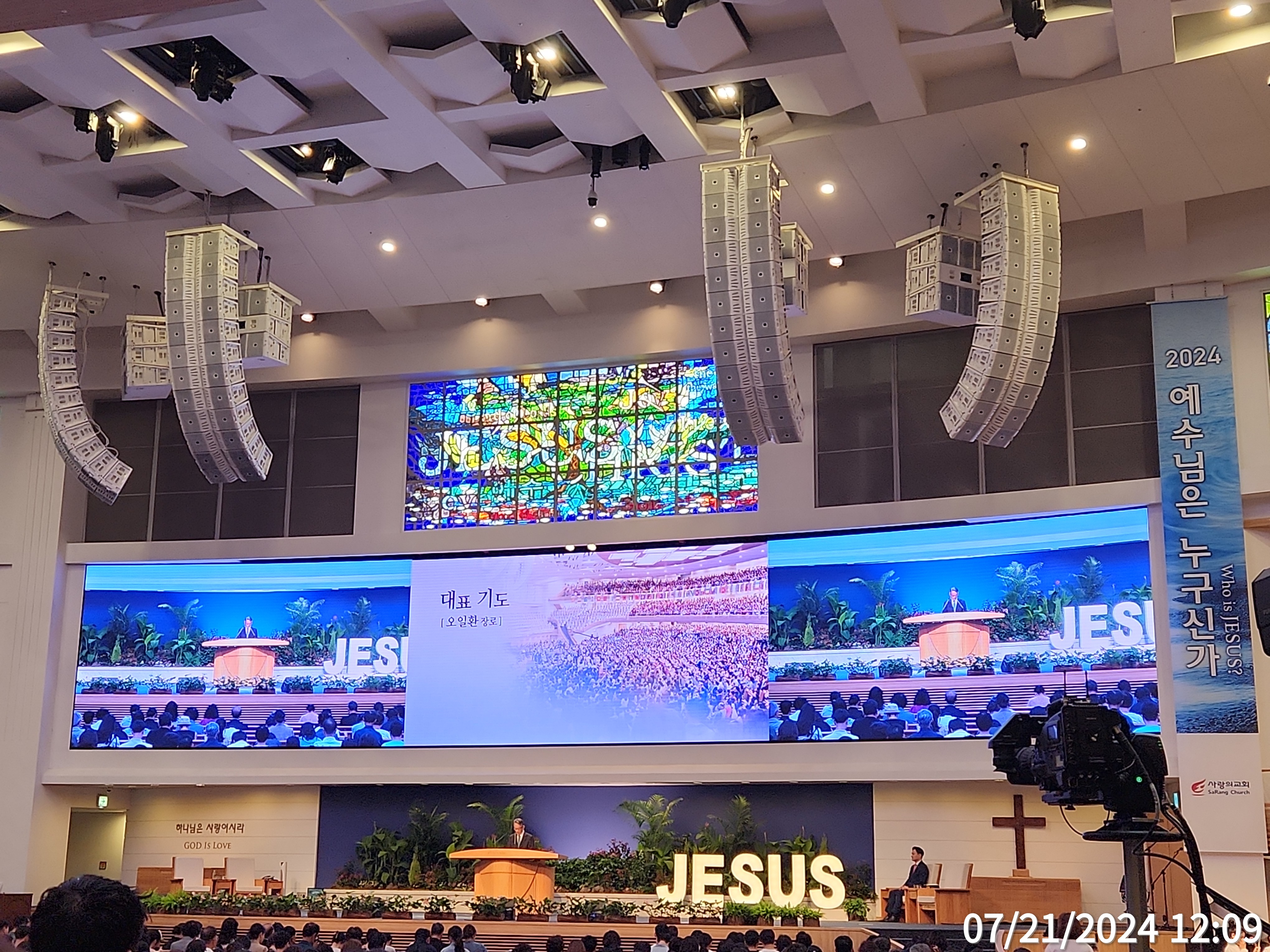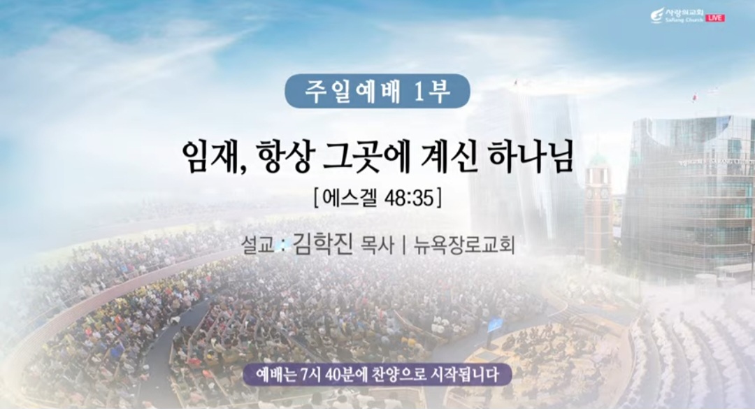 ♣주일예배(주후 2024년 7월 21일) 제목: “임재, 항상 그곳에 계신 하나님”(1,2부), “은혜 속으로”(3,4부) 말씀: 에스겔 48:35 찬양인도: 쉐키나(이 다니엘 부목사님), 영광찬양대 대표기도: 이선복 부목사님 사회: 천동원 부목사님 설교자: -김학진 목사님(1,2부-“임재, 항상 그곳에 계신 하나님”), -윤대혁 목사님(3,4부-“은혜 속으로”) ----- *에스겔 48:35, 35 그 사방의 합계는 만 팔천 척이라 그 날 후로는 그 성읍의 이름을 여호와삼마라 하리라. *베드로후서 1:2-4, 2 하나님과 우리 주 예수를 앎으로 은혜와 평강이 너희에게 더욱 많을지어다. 3 그의 신기한 능력으로 생명과 경건에 속한 모든 것을 우리에게 주셨으니 이는 자기의 영광과 덕으로써 우리를 부르신 이를 앎으로 말미암음이라. 4 이로써 그 보배롭고 지극히 큰 약속을 우리에게 주사 이 약속으로 말미암아 너희가 정욕 때문에 세상에서 썩어질 것을 피하여 신성한 성품에 참여하는 자가 되게 하려 하셨느니라. ----- ▶김학진 목사님(1,2부-“임재, 항상 그곳에 계신 하나님”), 할렐루야 반갑습니다. 저에게 사랑의 교회는 마음의 영적 고향 갈릴리와 같은 곳입니다. 그리고 언제든지 돌아오면 마음의 위로가 있고, 포근한 사랑과 격려가 있는 친정집과도 같습니다. 제가 200년부터 2009년까지 이곳 사랑의 교회에서 사역할 수 있었던 시간은 저게 가장 큰 영광의 시간이었습니다. 특별히 오늘 여러분과 함께 예배를 드리고 또 하나님의 말씀을 나눌 수 있다. 라는 것이 저에게는 너무나 이는 너무나 큰 영광이고 기쁨입니다. 이 귀한 강단을 허락해 주신 사랑하고 존경하는 우리 오정현 담임 목사님과 당회, 그리고 교회에게 진심으로 감사의 마음을 표합니다. 저는 제가 섬기고 있는 뉴욕 장르교회에서 벌써 7년차가 되었습니다. 교회에서 배려를 해주셔서 2개월 좀 넘는 시간을 안식월로 이렇게 허락해 주셔서 잠시 한국에 나오게 됐습니다. 하나님 이 기간 동안에 혹 하나님께서 말씀을 증거 할 수 있는 영광의 시간을 주신다면 무슨 말씀을 전할까요? 그런 마음으로 기도를 했는데요. 하나님께서 제 마음속에 주신 감동의 말씀이 오늘 저와 여러분이 함께 읽었던 이 에스겔서가 가장 마지막 절 말씀이었습니다. 특별히 저에게는 개인적으로 지난 2~3개월 동안 저에게 가장 큰 위로가 되었던 그 약속의 말씀이었거든요. 바라기는 오늘 전하는 저나, 듣는 우리 서울 사랑에게 모든 성도님들, 제가 받았던 하늘의 위로와 그 평안보다 더 큰 은혜를 받는 이 시간 그리고 돌아가신 시간되시기를 주님의 이름으로 축원하고 소망합니다. 사랑하는 성도 여러분, -여러분이 이 땅에서 신앙생활 하면서 언제가 가장 힘드세요? 언제가 가장 힘든 시간이십니까? 저는 하나님의 임재성에 대해서 의심이 생기는 그런 시간이 아닌가 생각을 합니다. 무슨 말일까요? 하나님 분명히 나와 함께 하시는 것을 믿는데 그런데 이런 질문이 생기는 것이죠. 과연 하나님이 정말 나와 함께 계시는가? 라고 하는 에 그 정도로 참 아린 가슴, 아픈 가슴, 긴 터널을 지나가는 듯한 그런 시간이 가장 힘든 시간이 아닐까 생각을 합니다. 여러분 저와 여러분이 힘들어하는 것은 믿음이 없어서가 아닙니다. 믿음이 없는 사람들은 하나님의 임재에 대해서 별로 나와 힘든 것과 연결시키지 않죠. 그렇지만은 하나님을 정말로 믿는 하나님의 백성들에게는 이 부분이 정말 힘든 부분입니다. 하나님이 나를 사랑하신다는 것, 우리는 믿습니다. 그리고 하나님은 정말로 선하신 하나님이라는 것, 믿습니다. 그리고 그 하나님은 전능하신 하나님이다. 라는 것을 우리가 믿죠. 그런데 왜? 그런데 내게 왜? 또 어떻게 나에게 이런 이해할 수 없는 어려운 시간들이 주어지는 것일까? 내가 가장 사랑하는 사람들에게도 어떻게 저런 이해할 수 없는 일들이 생기는 것일까? 등등, 이런 시간들이 실질적으로 믿는 하나님의 백성들에게는 참으로 힘든 시간이 아닌가 생각을 합니다. 참 그런 차원에서 볼 때, 오늘 이 본문 말씀은 실은 에스겔서의 결론의 말씀입니다. 이 말씀 속에 이러한 아린 질문들에 대한 하나님이 주시는 영적 통찰(通察)력이 있고요. 그리고 무엇보다 귀한 믿음의 에스겔의 신앙의 고백이 저와 여러분의 신앙의 결론이 될 때에, 우리의 모든 질문들이 주안에서 평안함으로 해결될 줄로 믿는 것입니다. 자, 오늘 이 말씀을 다시 한 번 읽어 보면은 이런 말씀 아닙니까? *에스겔 48:35, 35 그 사방의 합계는 만 팔천 척이라 그 날 후로는 그 성읍의 이름을 여호와삼마라 하리라. -이 말씀을 조금 더 이해하기가 쉬운 우리 현대인 성경 버전으로 보게 되면 이렇게 번역을 했습니다. 그리고 그 성의 전체 둘레는 약9.5킬로미터이다. 사람들은 그 성을 여호와께서 계시는, 여호와께서 계시는 성이라 부를 것이다. 말씀했습니다. 에스겔서는 전체 48장이나 되는 예언서(豫言書)입니다. 그리고 오늘 이 말씀 아까 말씀드린 거와 같이 가장 마지막 절 말씀이고 결론의 말씀입니다. 에스겔 선지자에 있어서 개인적으로 이 마지막 말씀은 긴 그의 눈물에 신앙의 여정(旅程)을 결론짓는 그리고 결론으로 신앙 고백, 귀한 말씀인 것입니다