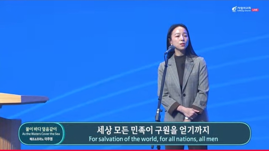 ▶할렐루야!. 찬양대가 고백한 대로 오늘 예배를 통하여 주님만의 높임을 받으시기를 바라고 하나님의 강력한 뜻이 우리 성도들에게 삶의 여정에 그대로 펼쳐지기를 소망합니다. 지금 우리 교회는 우리 2주간 또 3주간의 특새(특별새벽기도회)의 기쁨과 그리고 ‘우리 한국 교회 섬김의 날’ 특별히 ‘WEA 세계 총회’를 섬긴 은혜와 영광의 여진이 우리에게 있는 줄로 믿습니다.