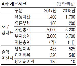-재무제표 분석- ▶ 매경TEST 기출문제 713회 Q. A사의 2017년, 2018년 재무제표의 일부이다. 이에 대한 올바른 분석은? ![]() ① (가)보다 (나)가 더 크다. ▶ 해설 재무상태표 등식에 따르면 `자산=부채+자본`이므로 자본총계는 자산총계에서 부채총계를 빼면 된다. 따라서 (가)는 2000억원, (나)는 1500억원이다. 대표적인 기업의 안전성 지표로, 이자보상비율과 순자산부채비율, 유동비율이 있다. A사의 이자보상비율(영업이익/이자비용)은 전년 대비 하락했으며, 2018년 이자보상비율은 1보다 작아 기업이 영업활동으로 번 이익으로 금융비용을 감당할 수 없는 상태인 것을 알 수 있다. 순자산부채비율(부채/자본)은 전년 대비 상승해 기업의 건전성이 악화됐다. 유동비율(유동자산/유동부채)은 기업의 단기부채 상환 능력을 측정하는 지표로 전년 대비 하락해 유동성이 악화됐다. 수익성 지표인 자기자본영업이익률(=영업이익/자기자본)은 전년 대비 상승했다. 정답은 ③ |