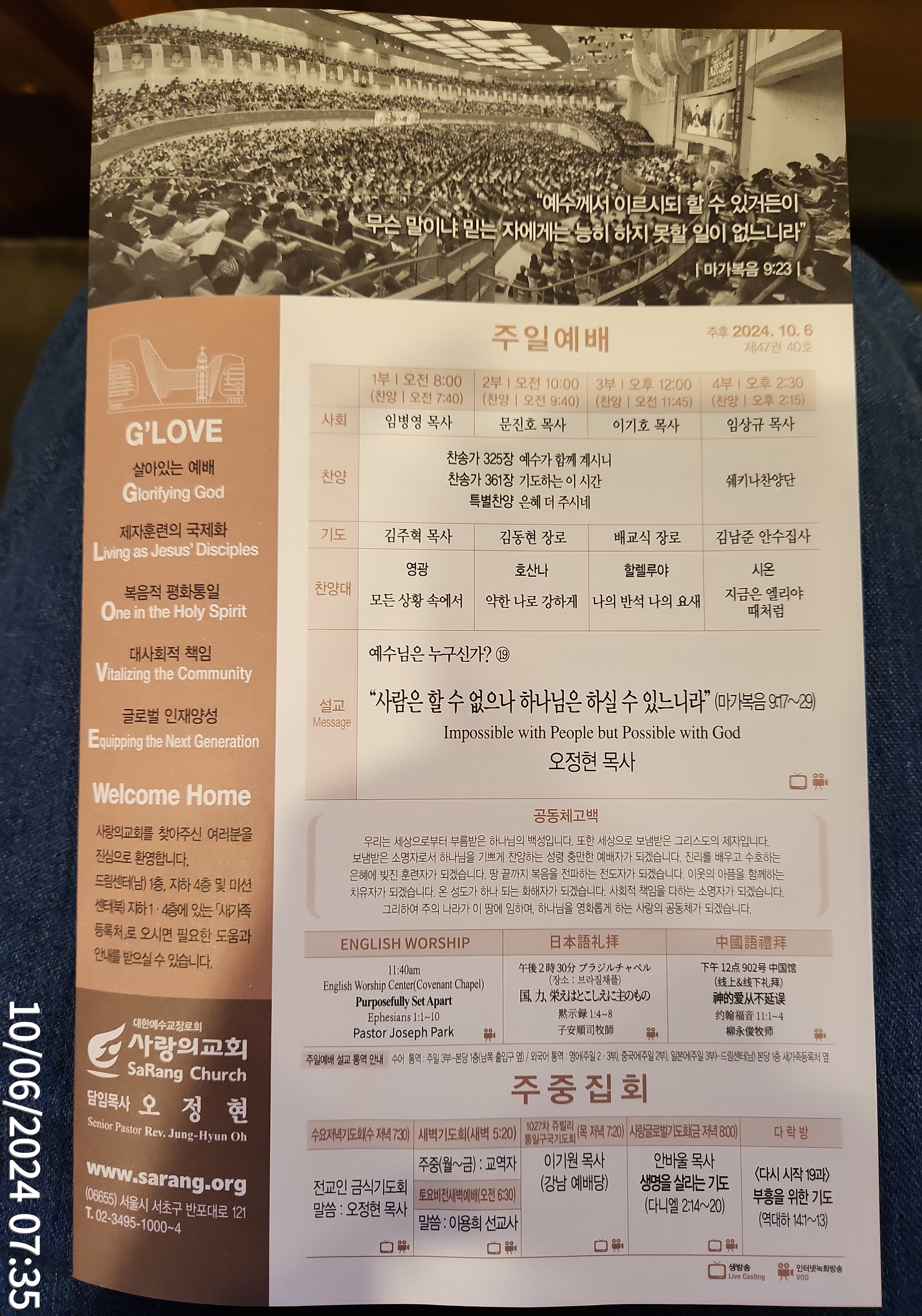 ☆ 주일예배(주후 2024년 10월 6일)"사람은 할 수 없으나, 하나님은 하실 수 있느니라"-예수님은 누구신가?⑲-(오정현 담임목사님)-사랑의 교회 ☆
